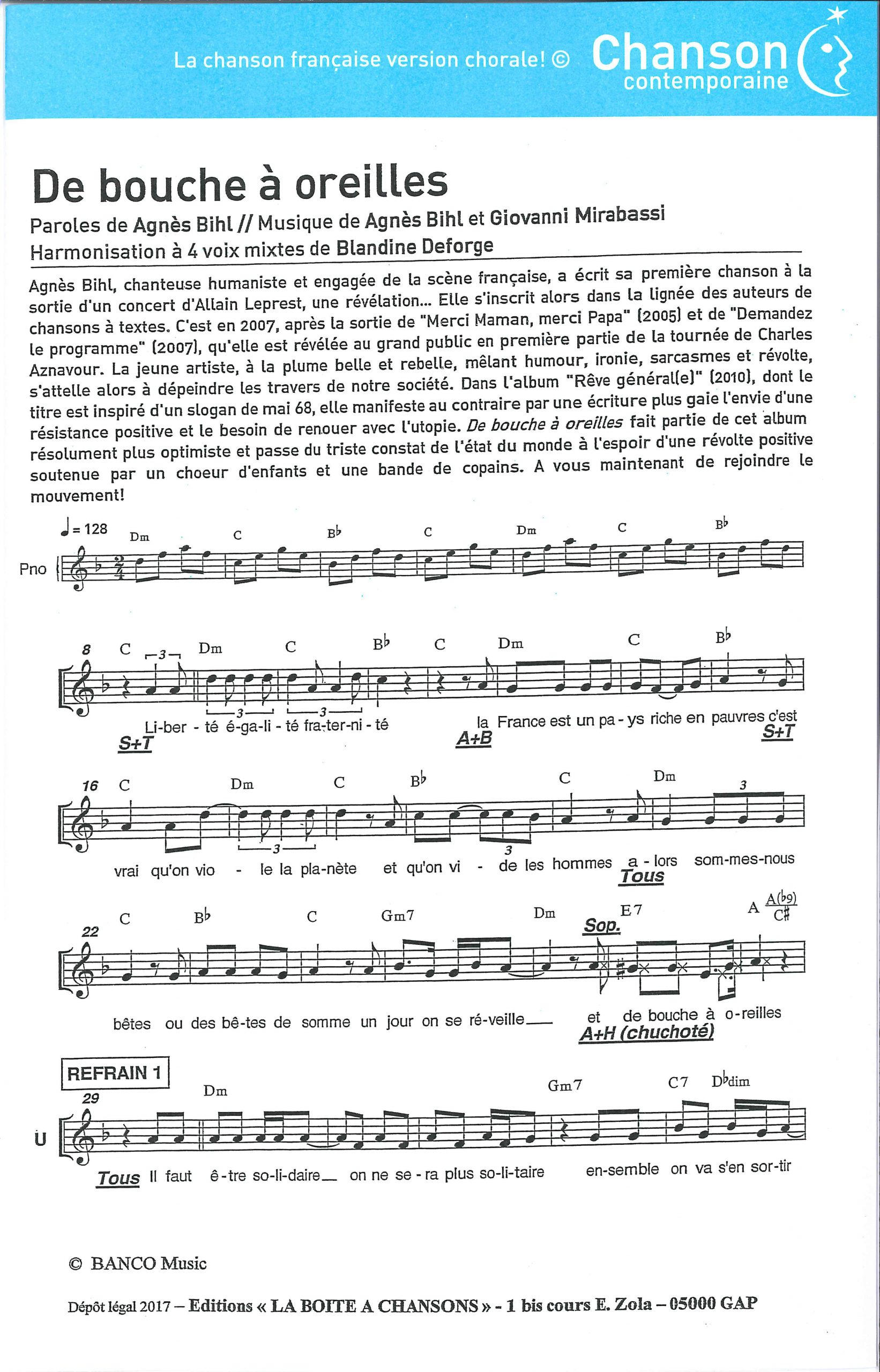 Paroles et musique : A. Bihl / G. Mirabassi Harmonisation : Blandine DEFORGE