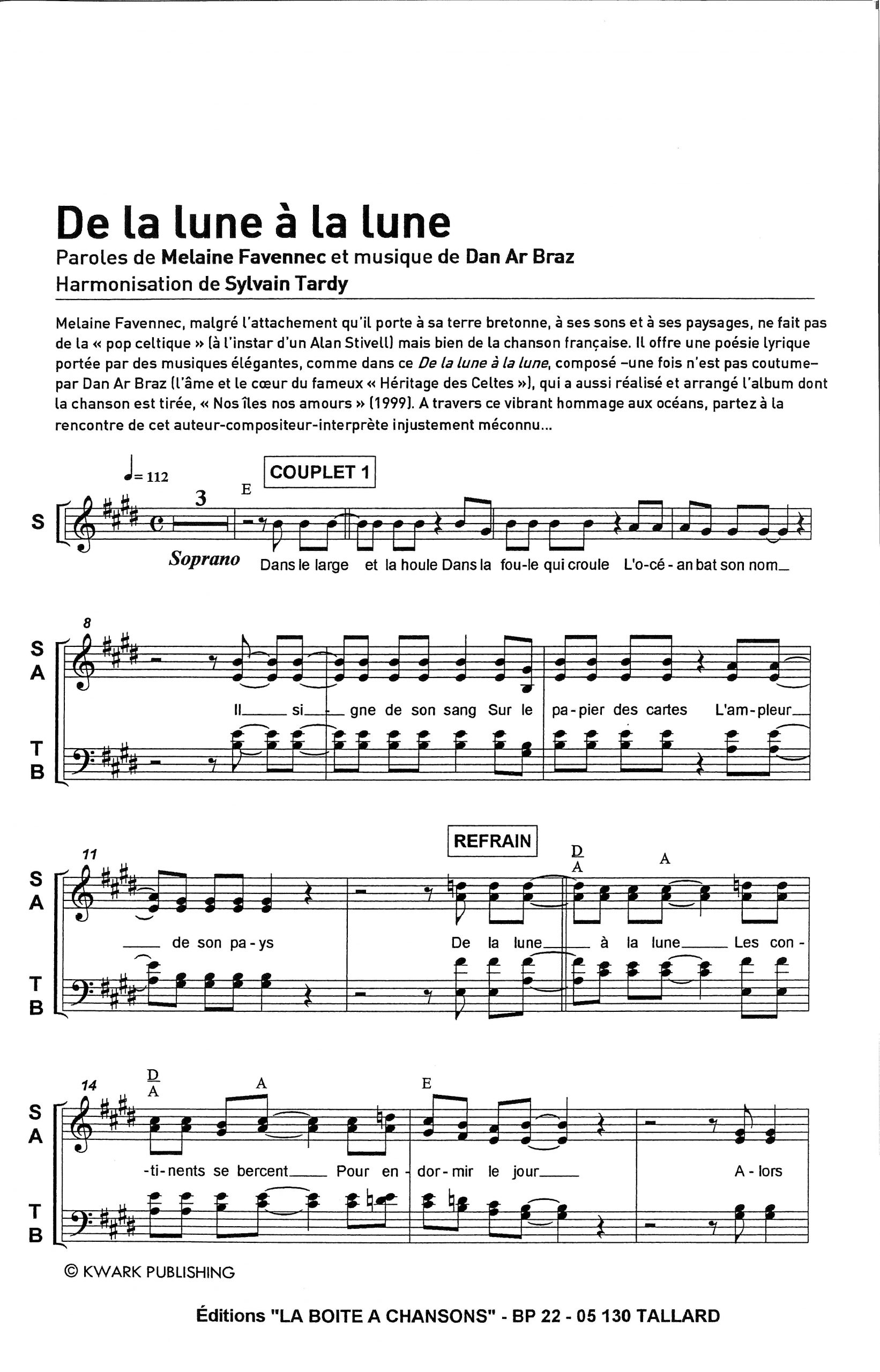 Paroles et musique de FAVENNEC/AR BRAZ Harmonisation : Sylvain TARDY