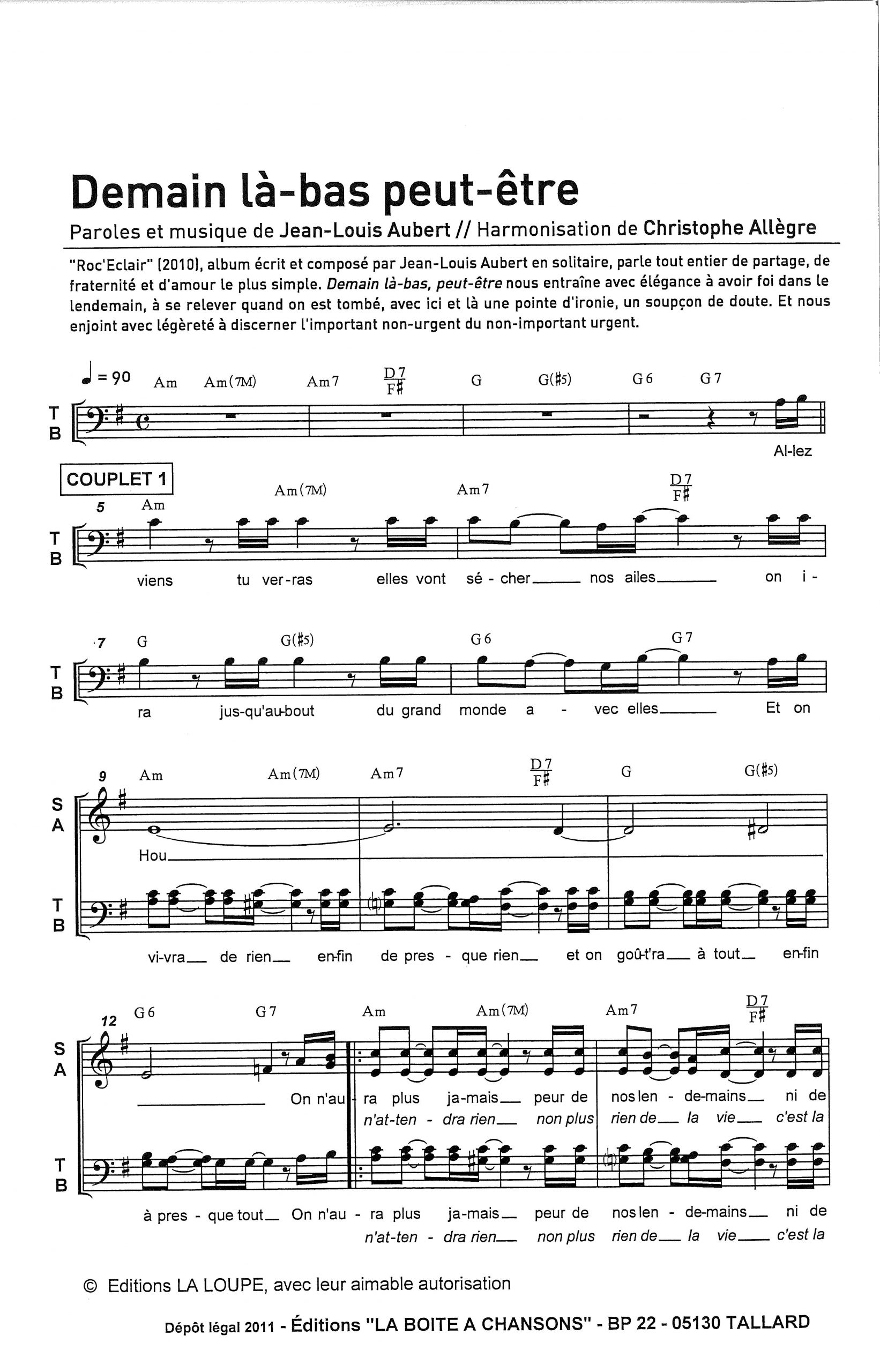 Paroles et musique de AUBERT Harmonisation : Christophe ALLEGRE
