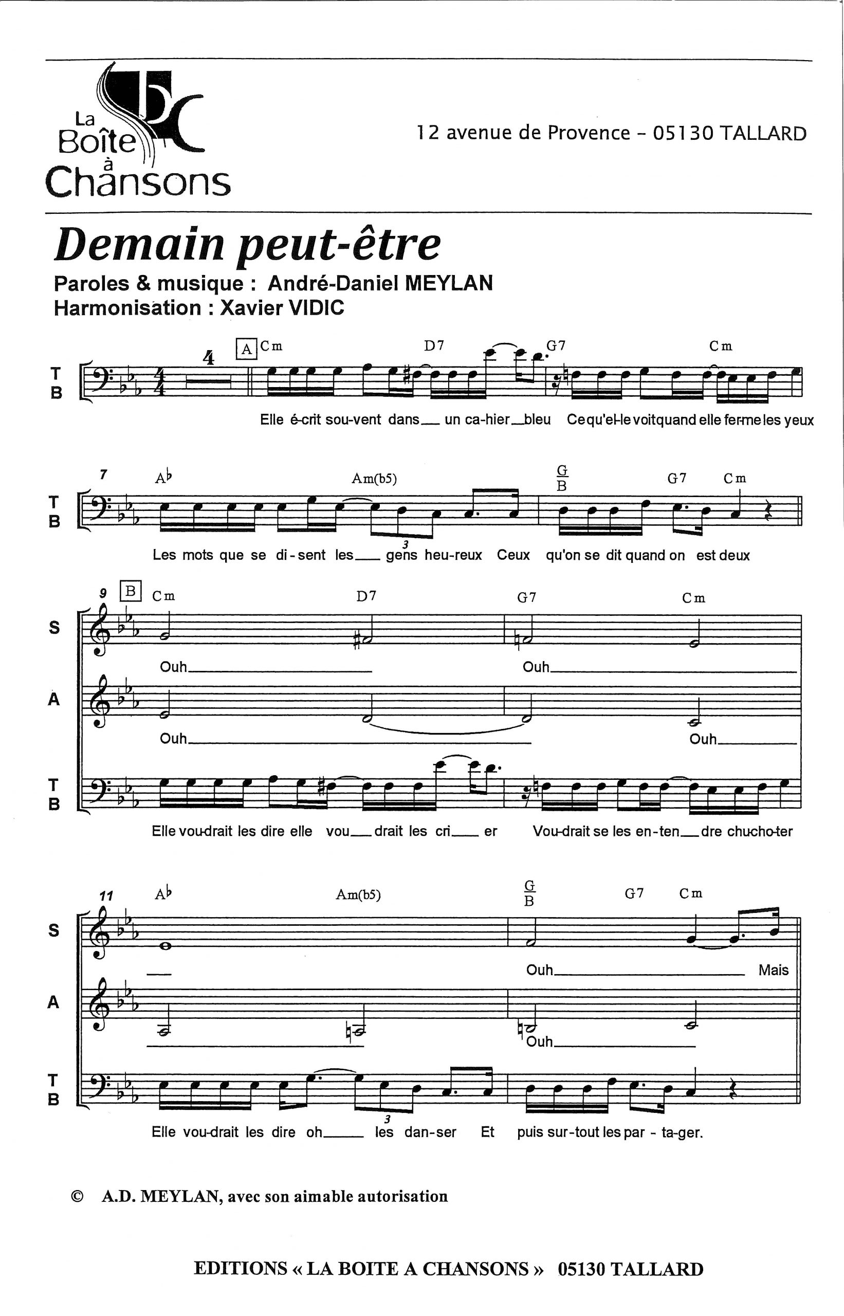 Paroles et musique de MEYLAN Harmonisation : Xavier VIDIC