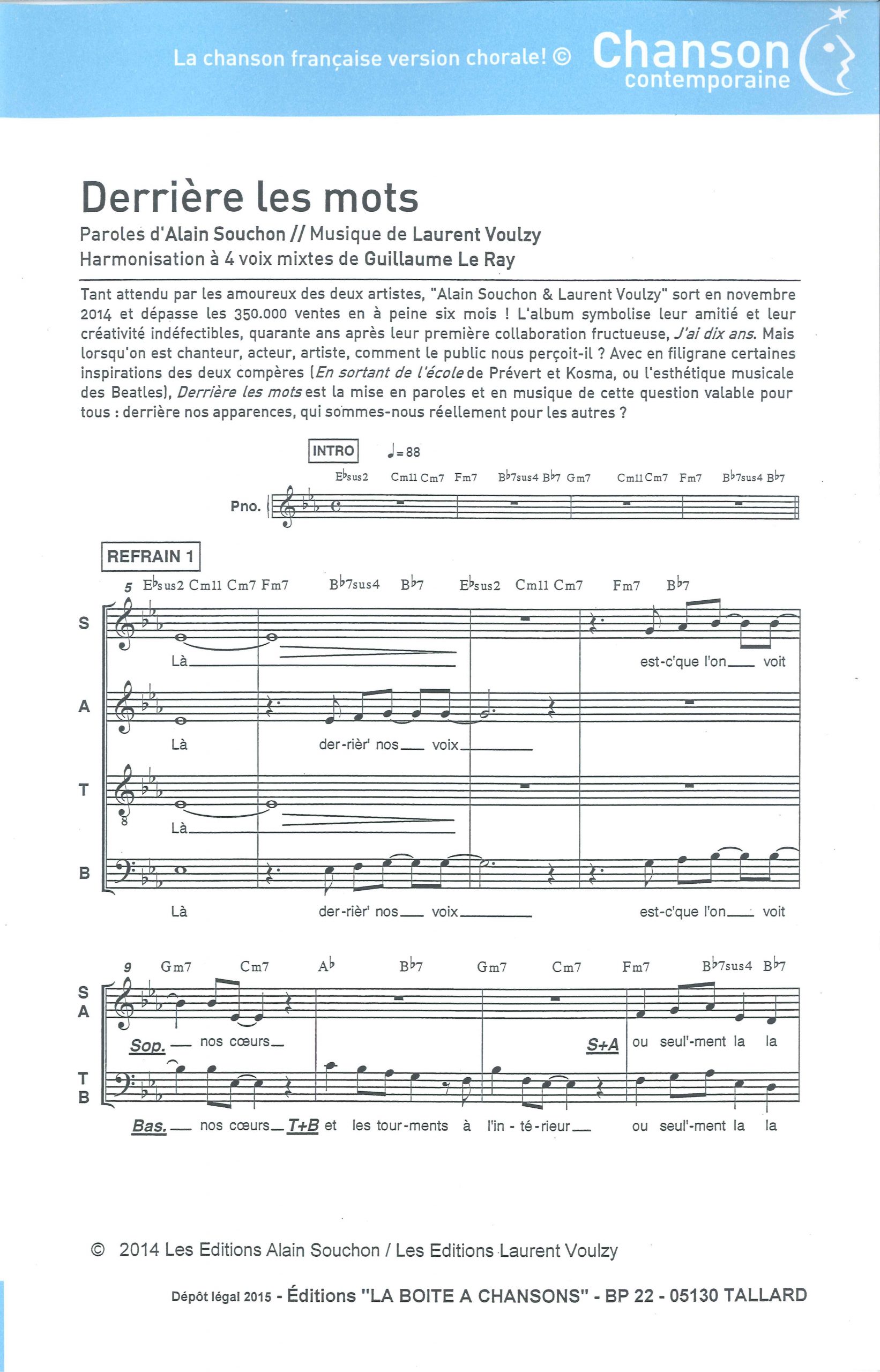 Paroles et musique : Souchon / Voulzy Harmonisation : Guillaume LE RAY