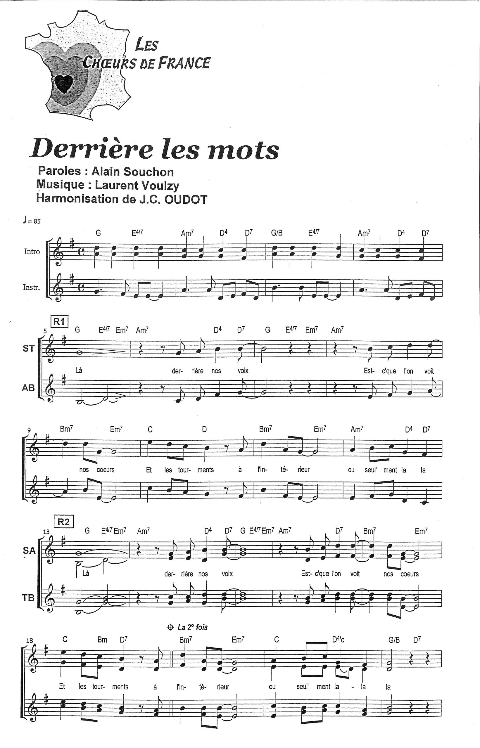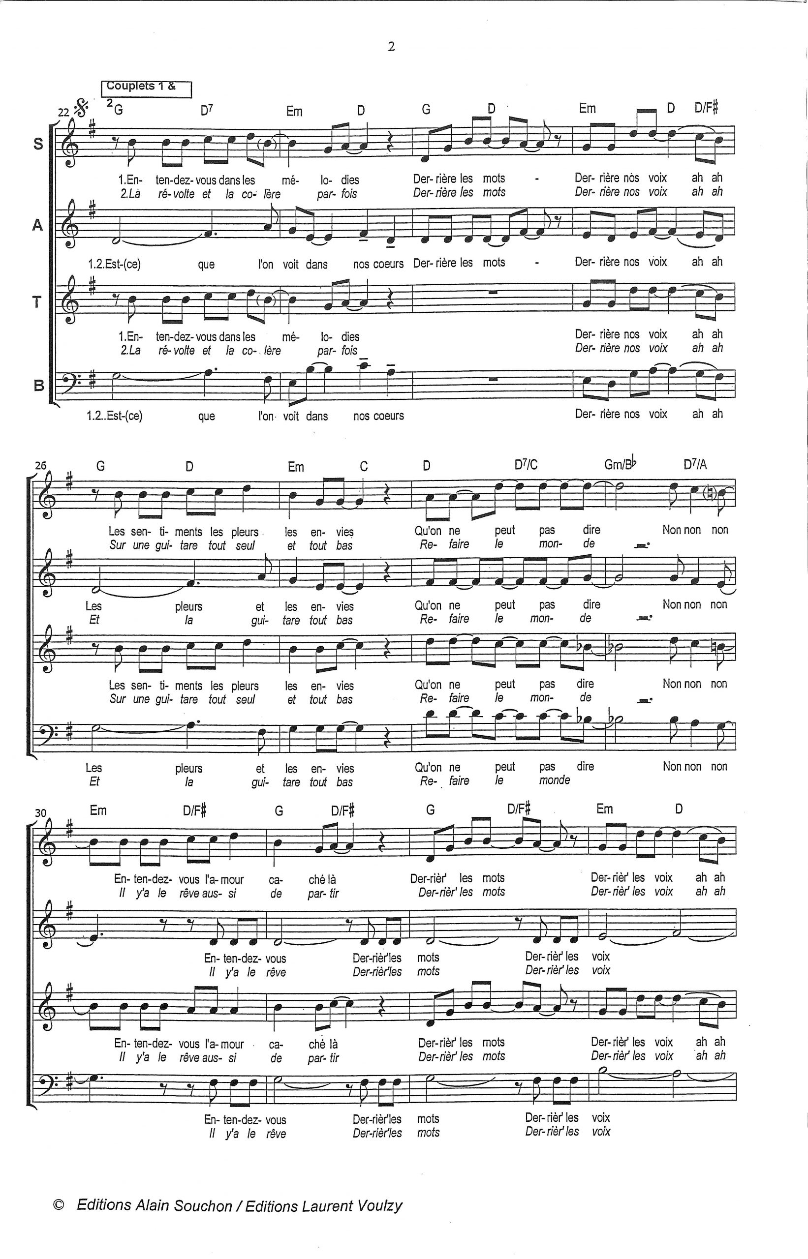 Paroles et musique : A. Souchon / L. Voulzy Harmonisation : Jean Claude OUDOT