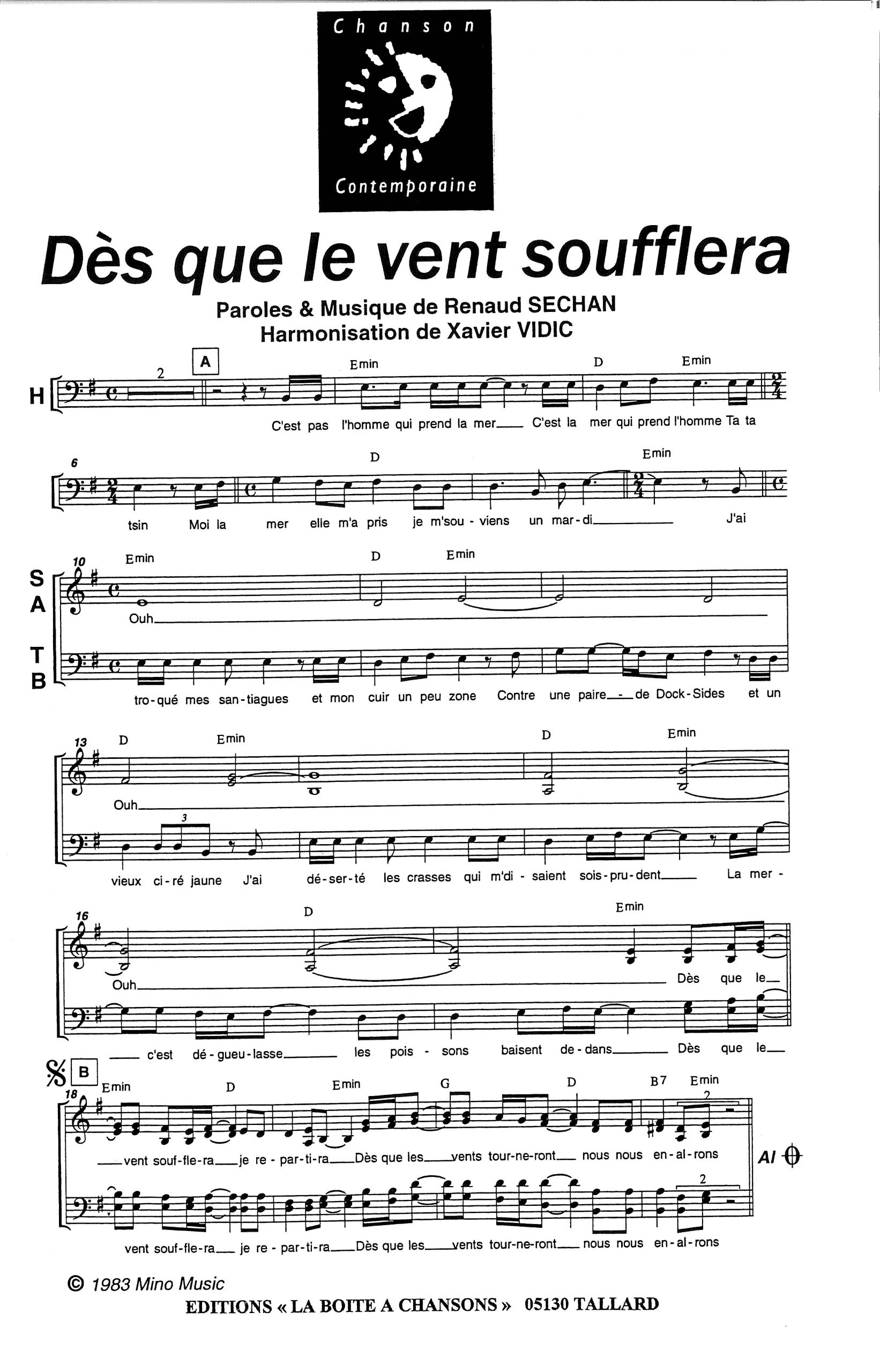 Paroles et musique de RENAUD Harmonisation : Xavier VIDIC