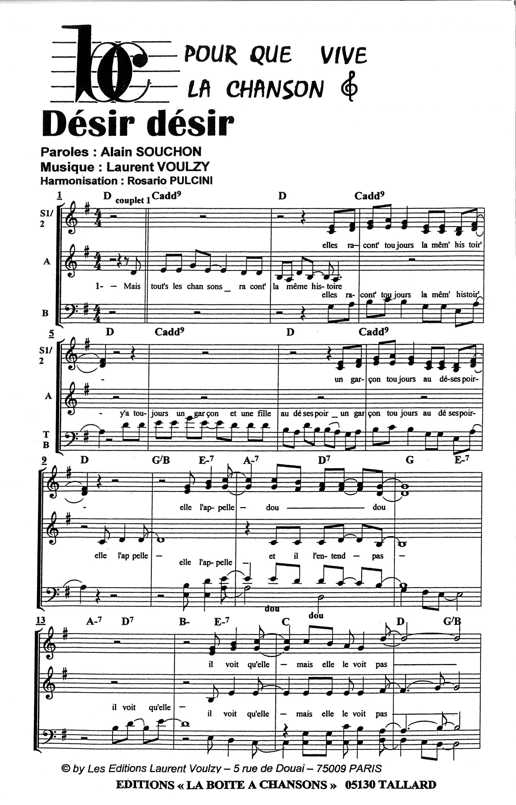Paroles et musique de SOUCHON/VOULZY Harmonisation :Rosario PULCINI
