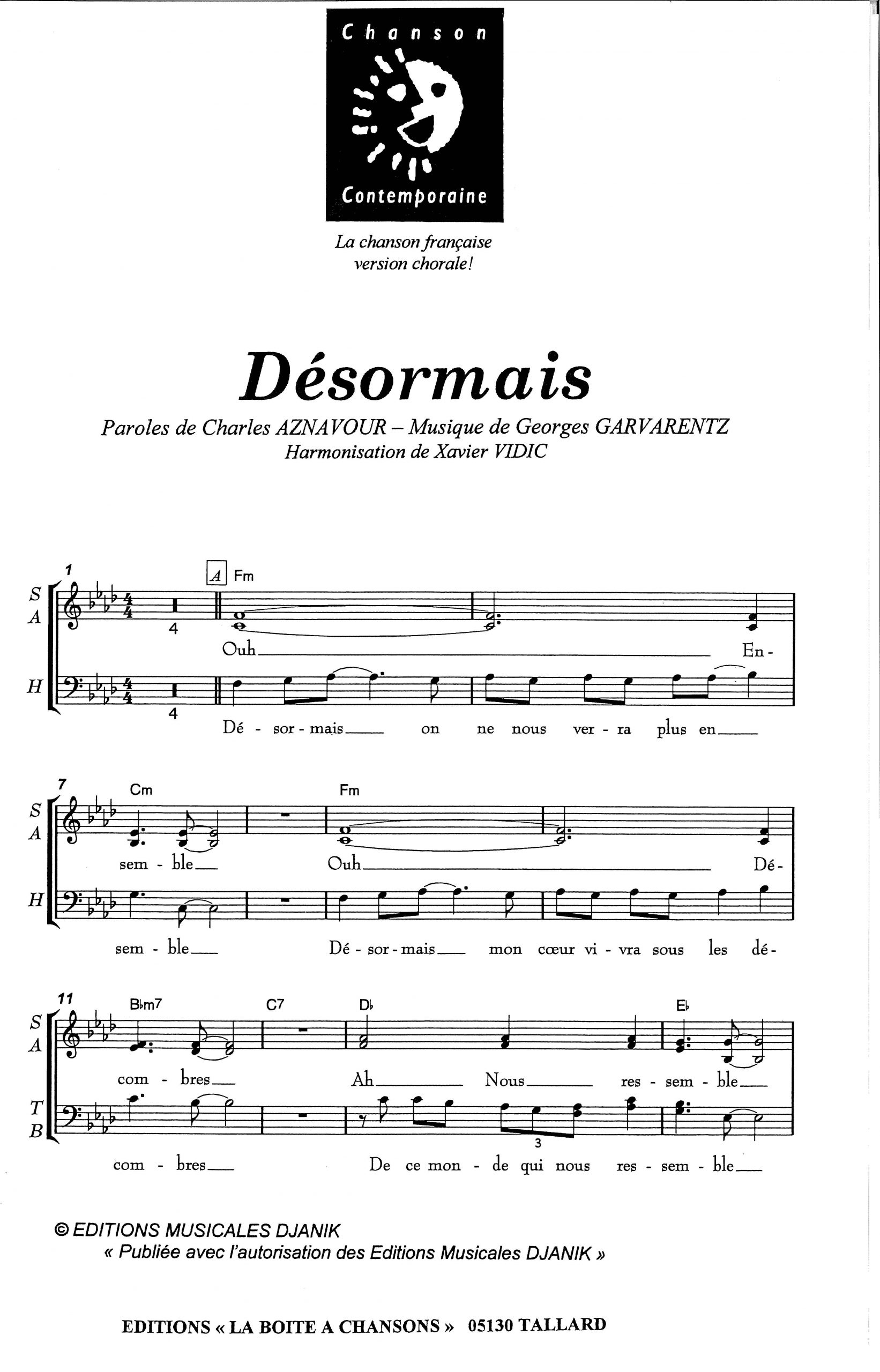 Paroles et musique de AZNAVOUR/GARVARENTZ Harmonisation : Xavier VIDIC