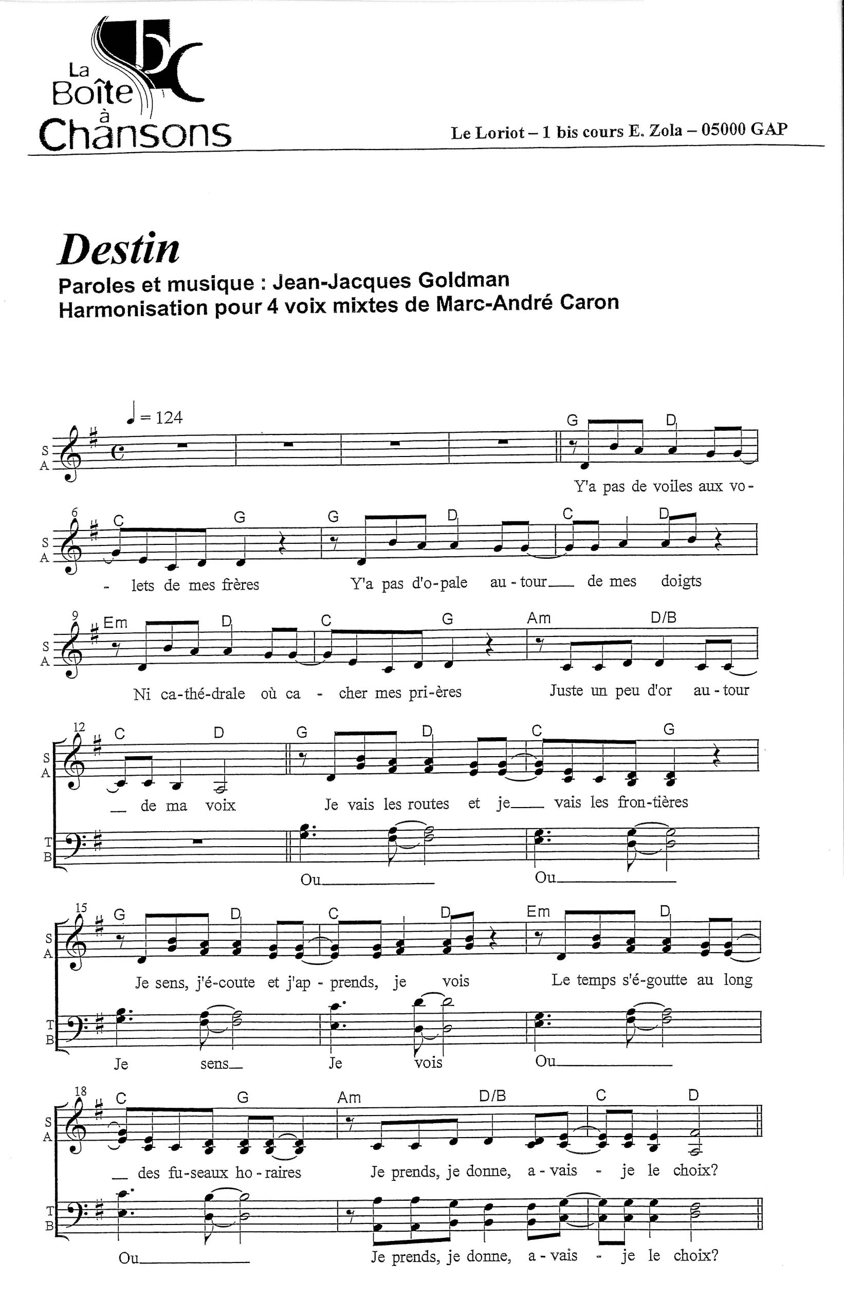 Paroles et musique : J.J. Goldman Harmonisation : Marc André Caron