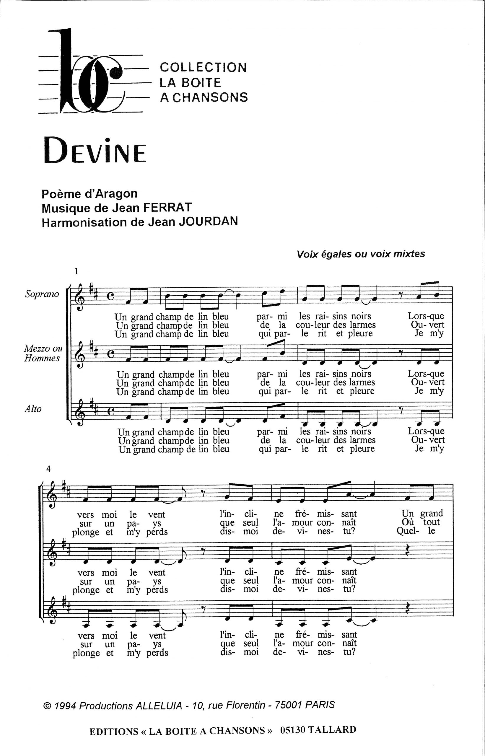 Paroles et musique de ARAGON/FERRAT Harmonisation : Jean JOURDAN
