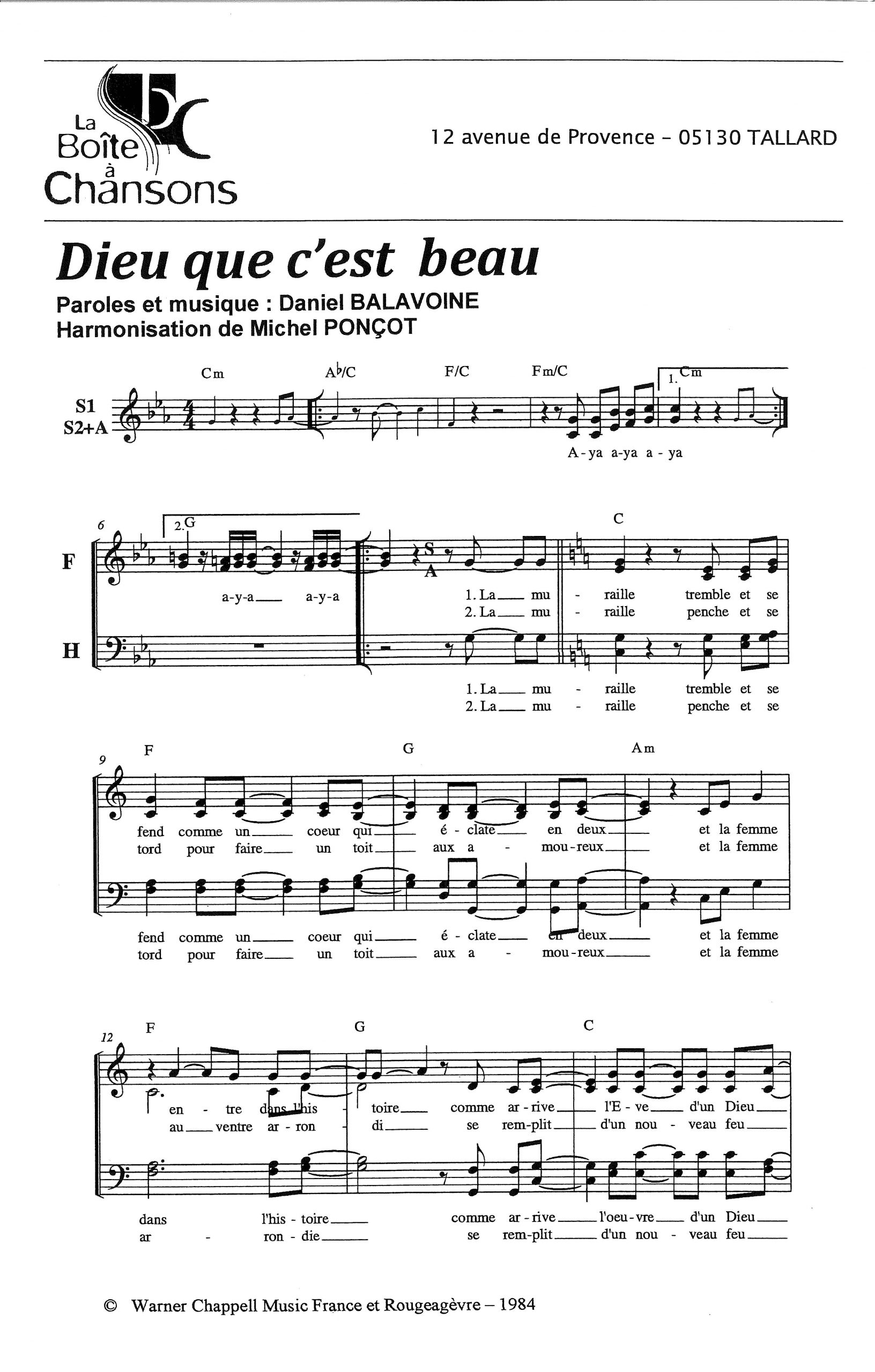 Paroles et musique de BALAVOINE Harmonisation : Michel PONCOT