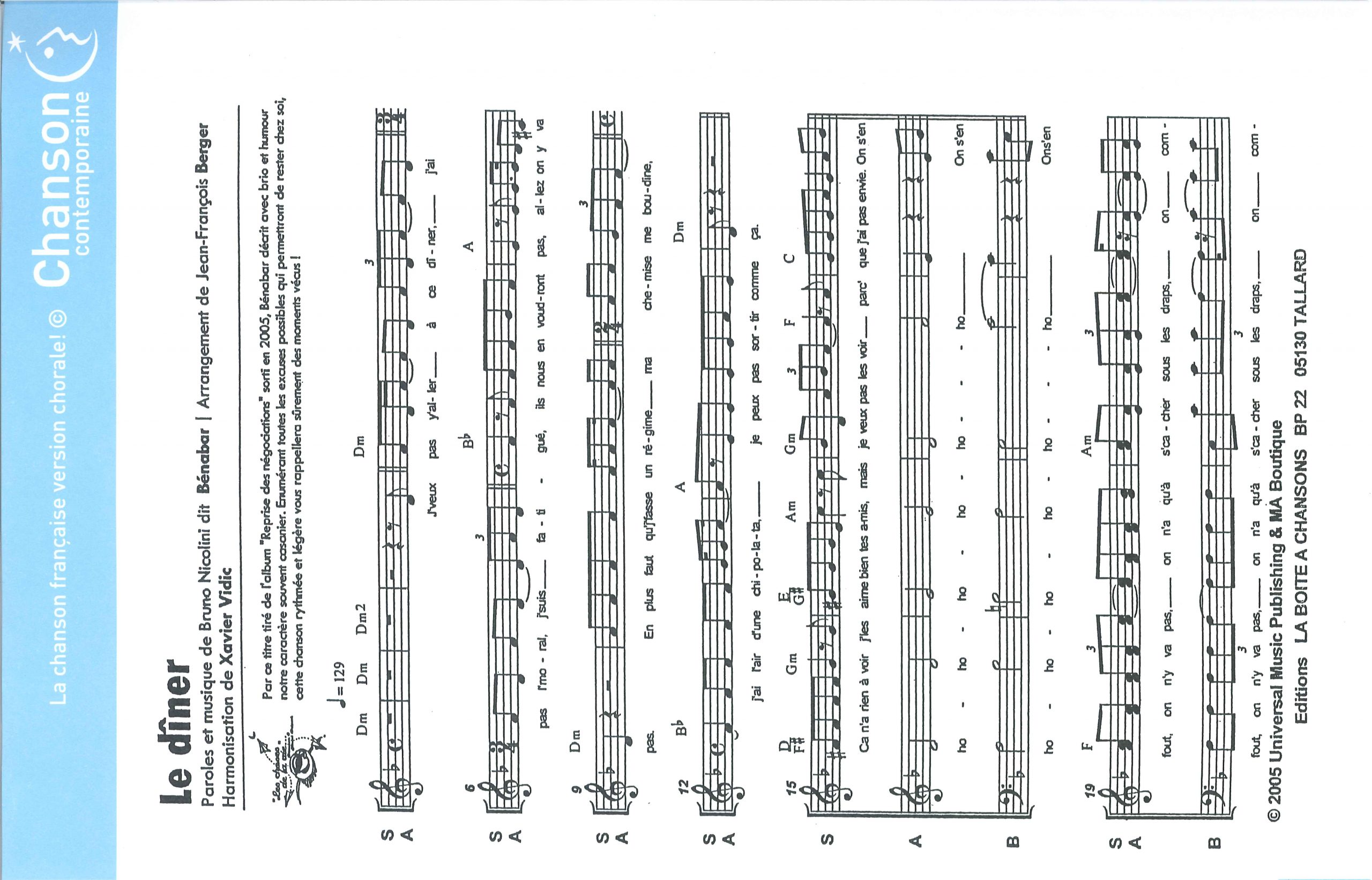 Paroles et musique de BENABAR Harmonisation : Xavier VIDIC
