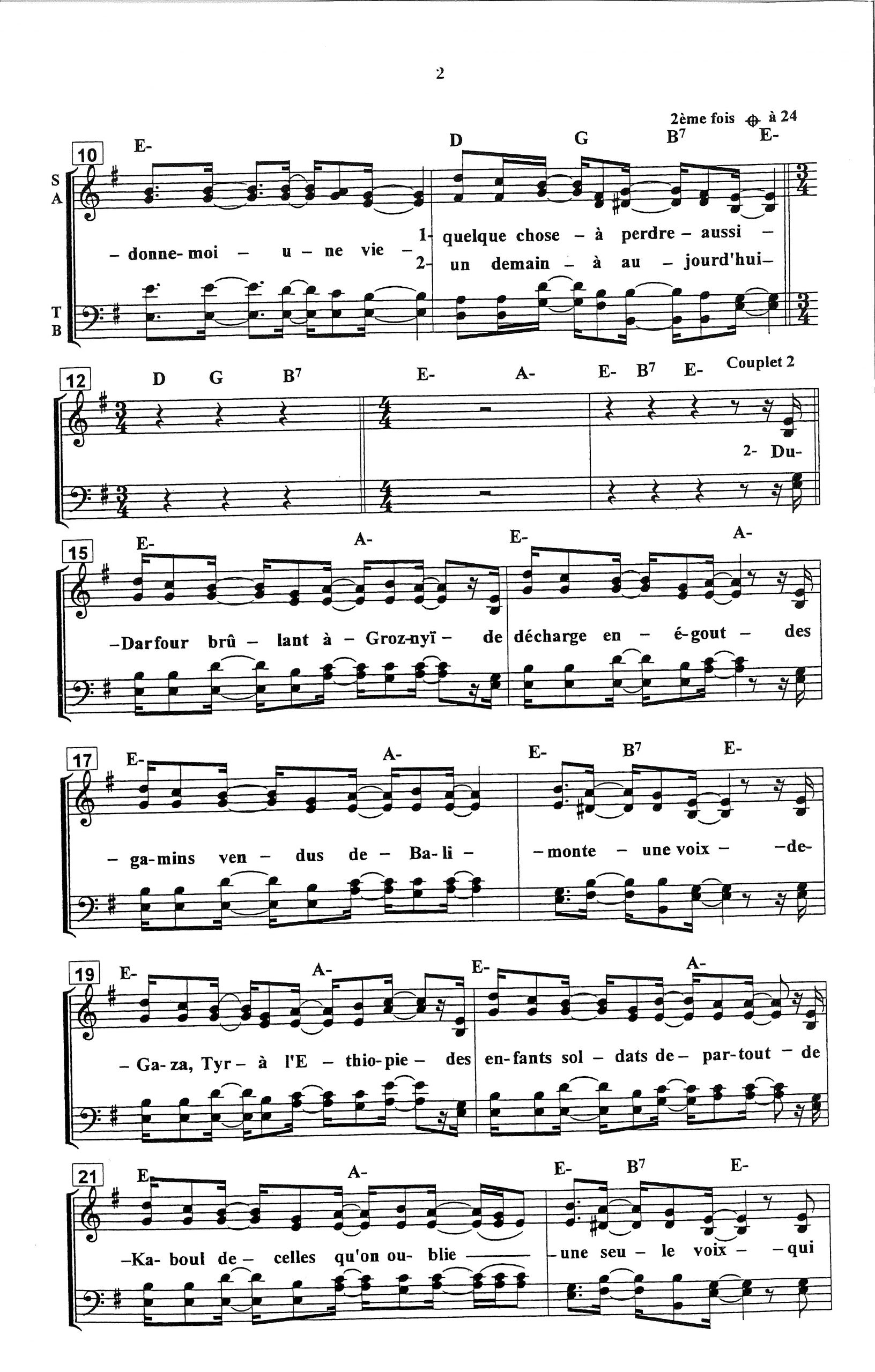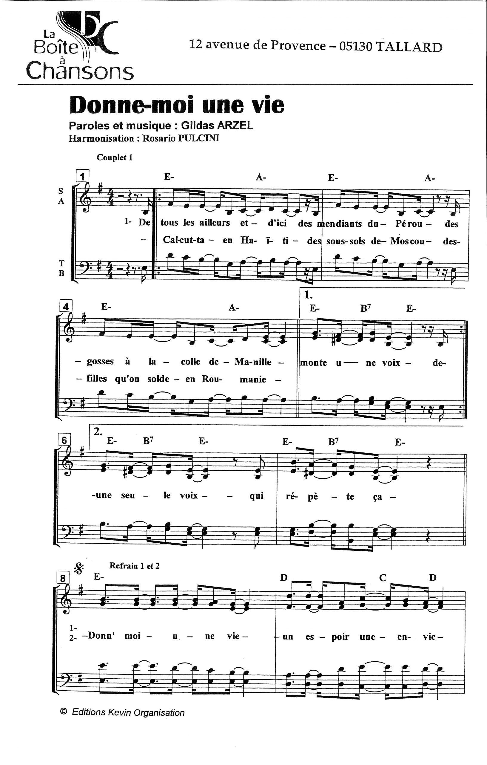 Paroles et musique de ARZEL Harmonisation : Rosario PULCINI