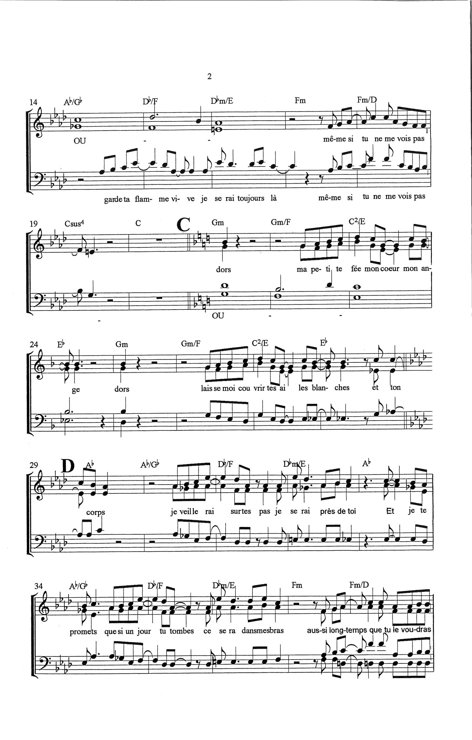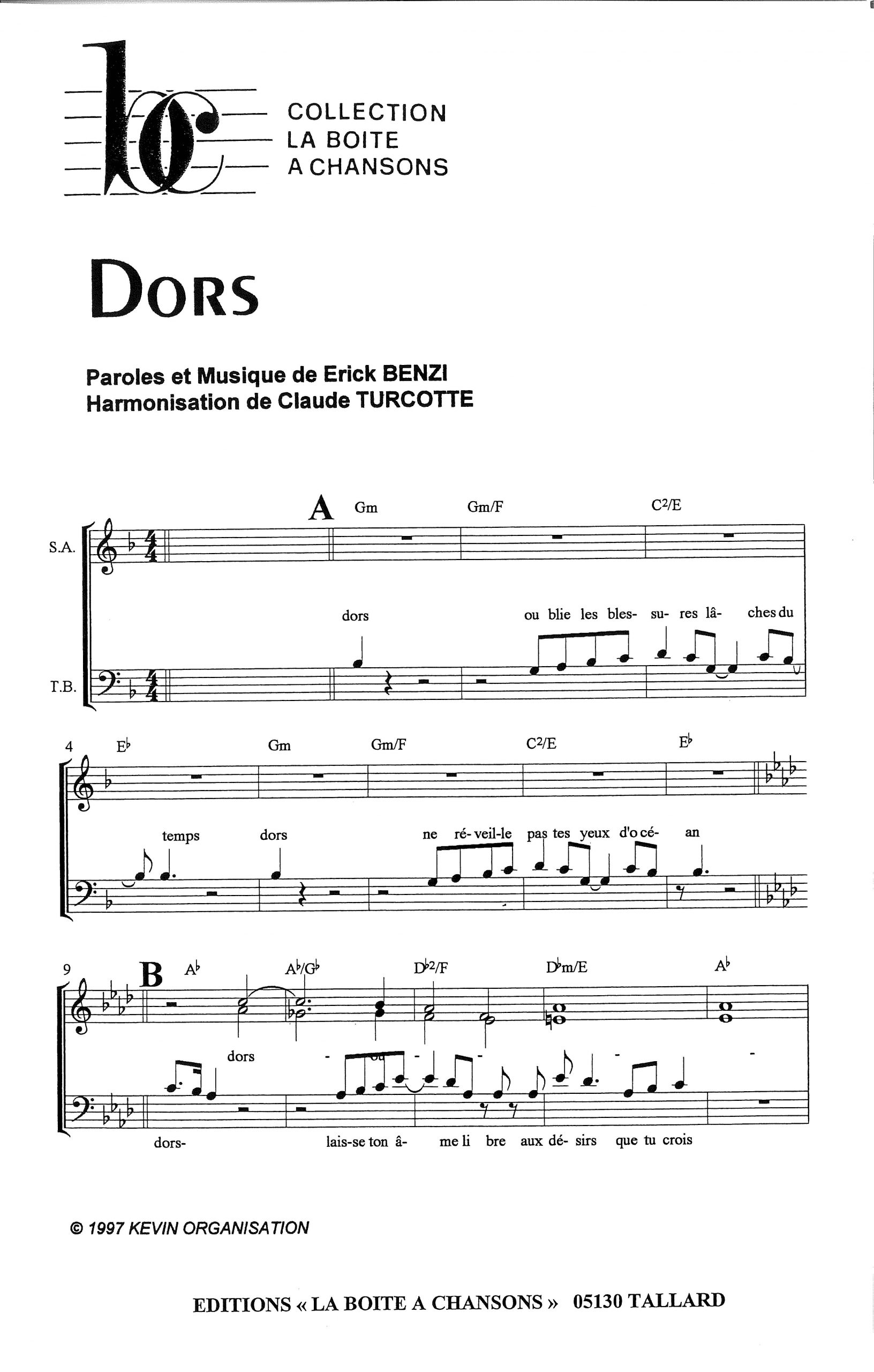 Paroles et musique de BENZI Harmonisation : Claude TURCOTTE