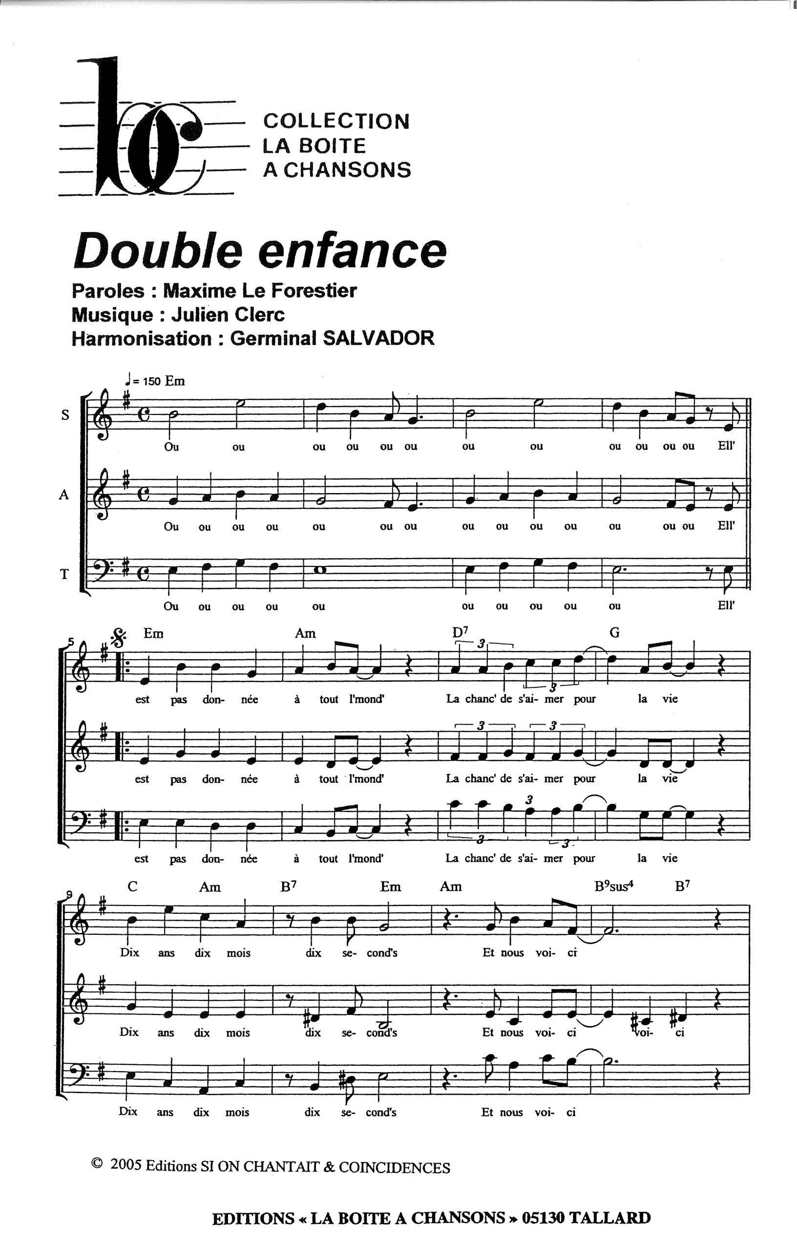 Paroles et musique de CLERC Harmonisation : Germinal SALVADOR