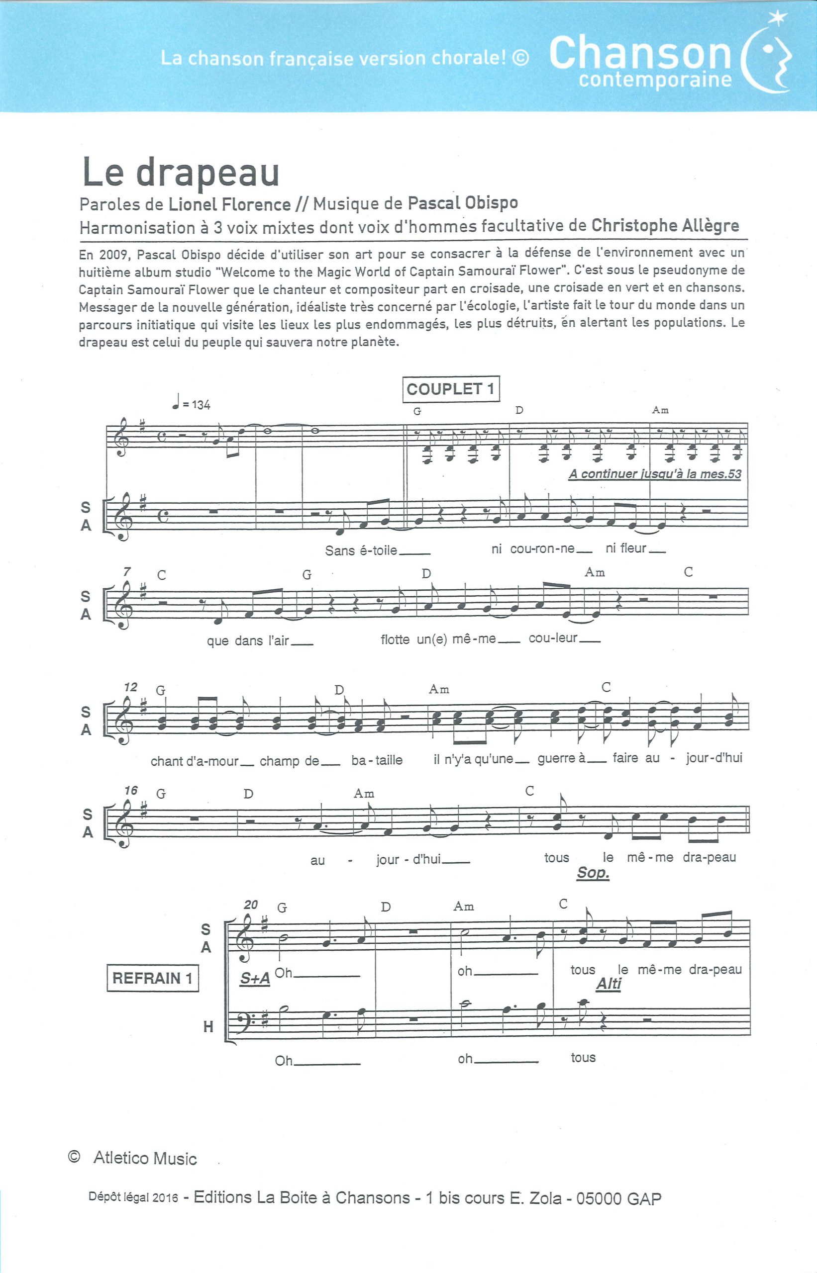Paroles et musique : L. Florence / P. Obispo Harmonisation : Christophe ALLEGRE