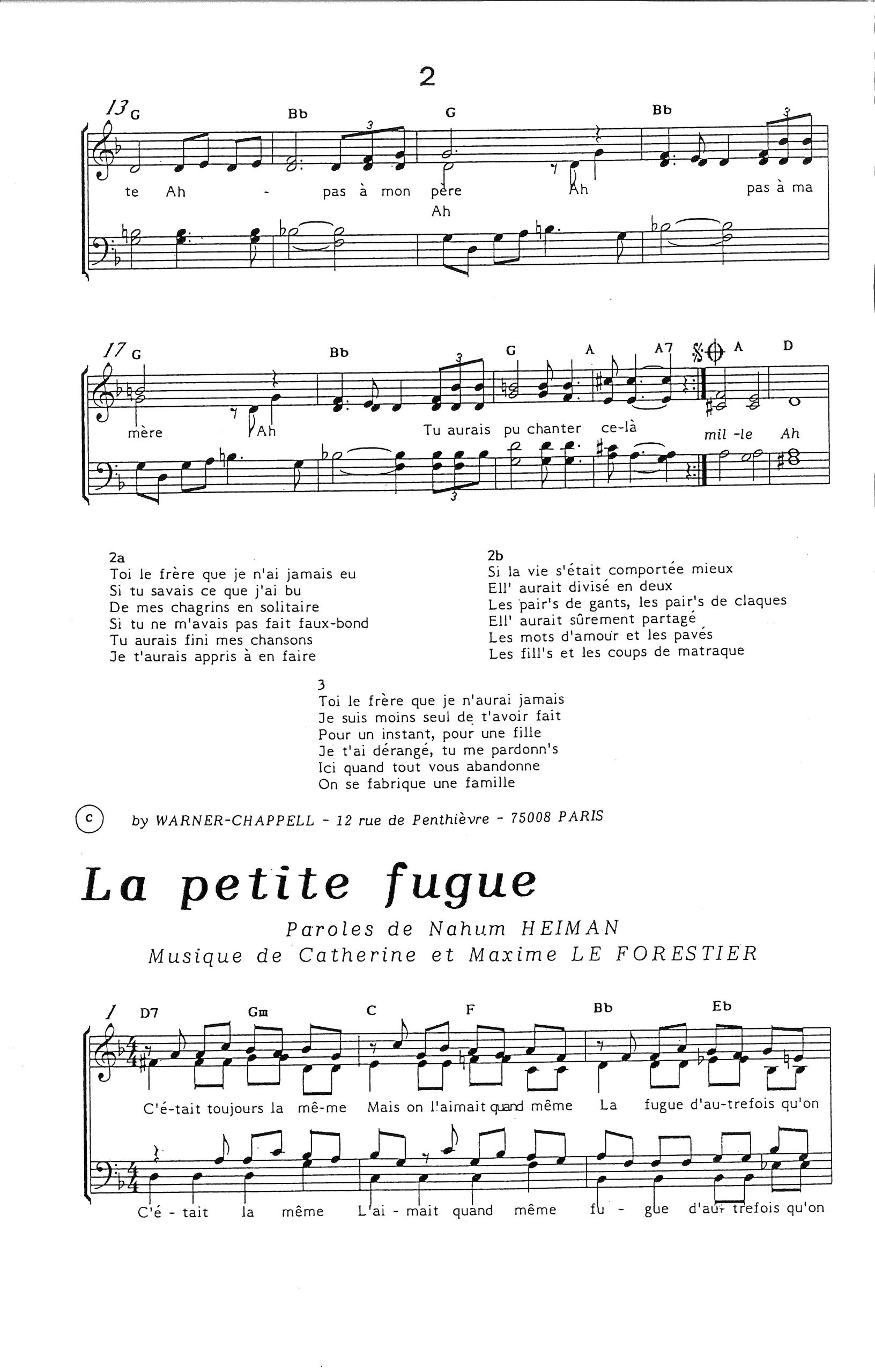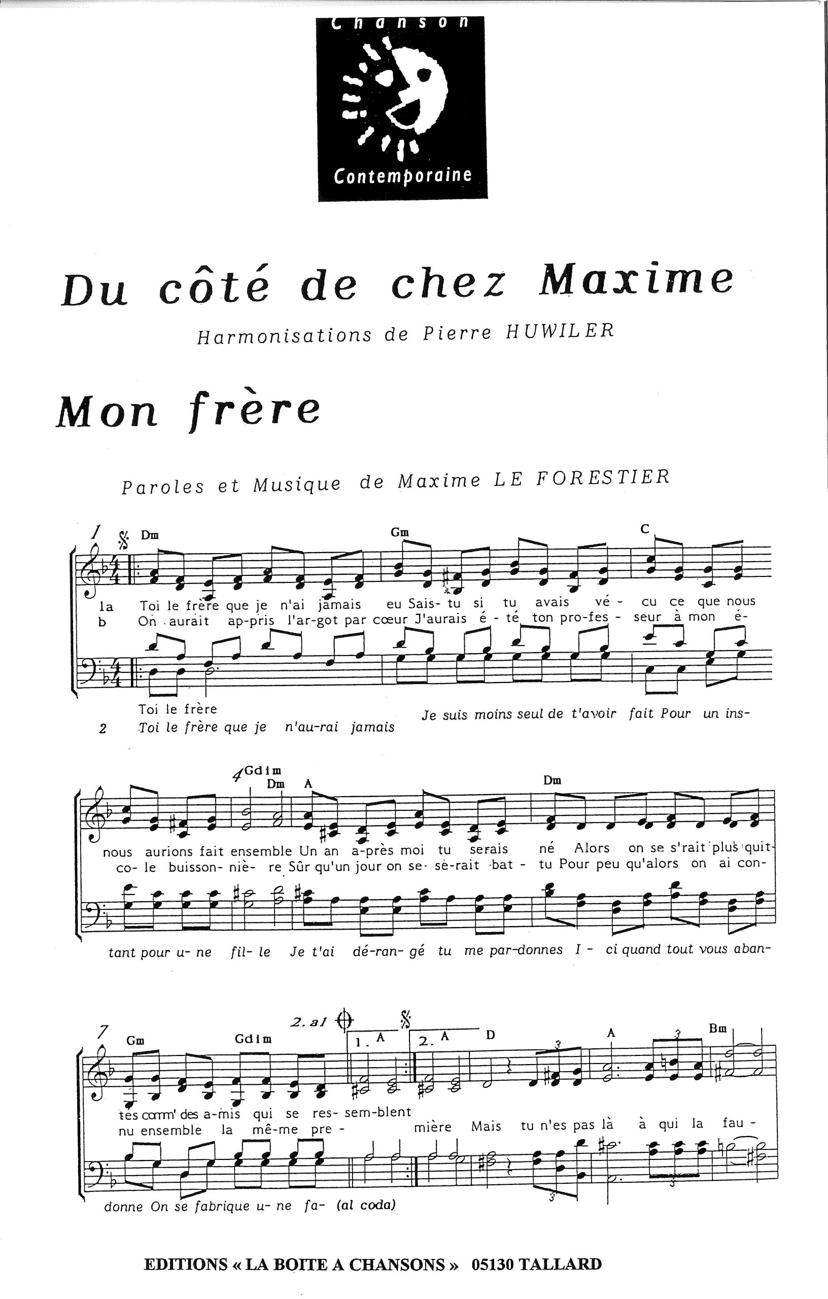 Paroles et musique de LE FORESTIER Harmonisation : Pierre HUWILER