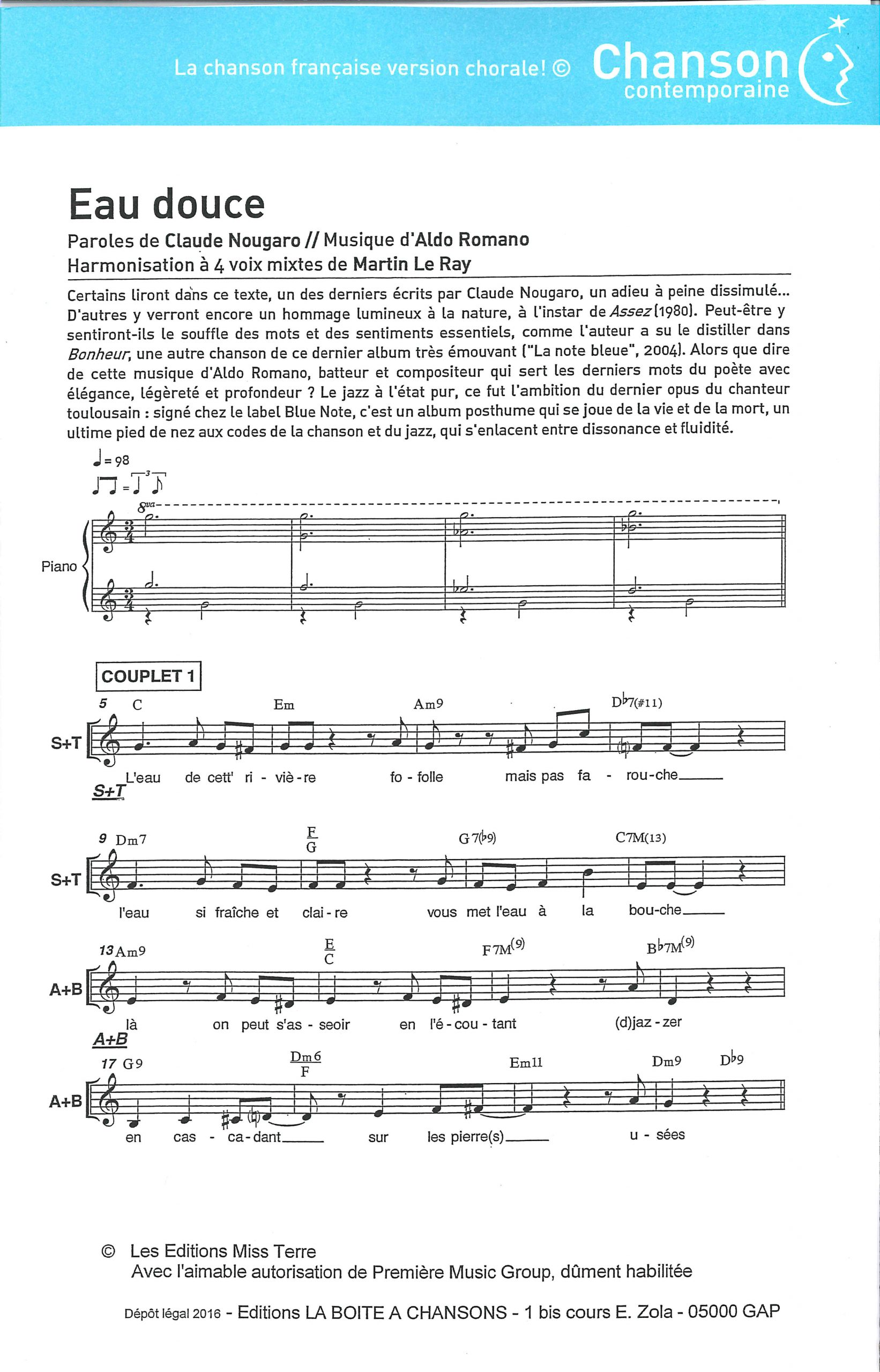Paroles et musique : C. Nougaro / A. Romano Harmonisation : Martin LE RAY