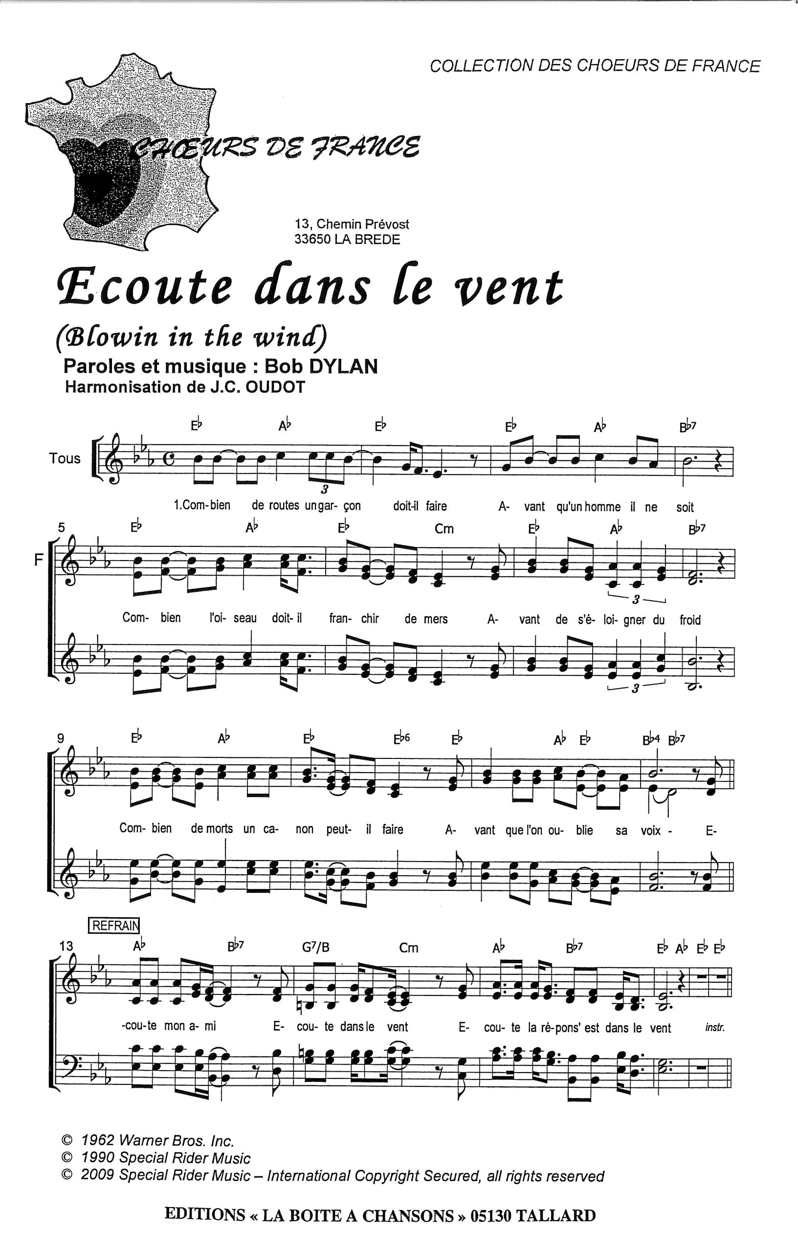 Paroles et musique de DYLAN Harmonisation : Jean Claude OUDOT