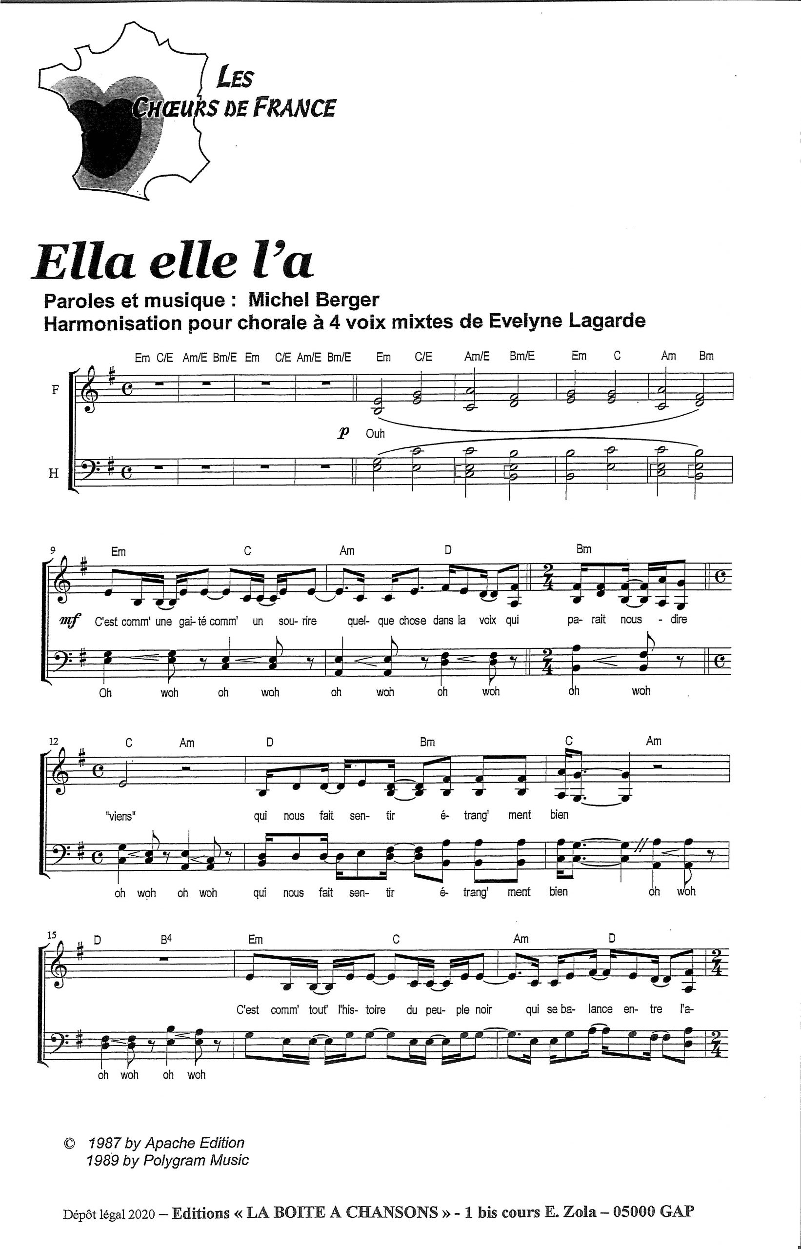 Paroles et musique : M. Berger Harmonisation : Evelyne Lagarde