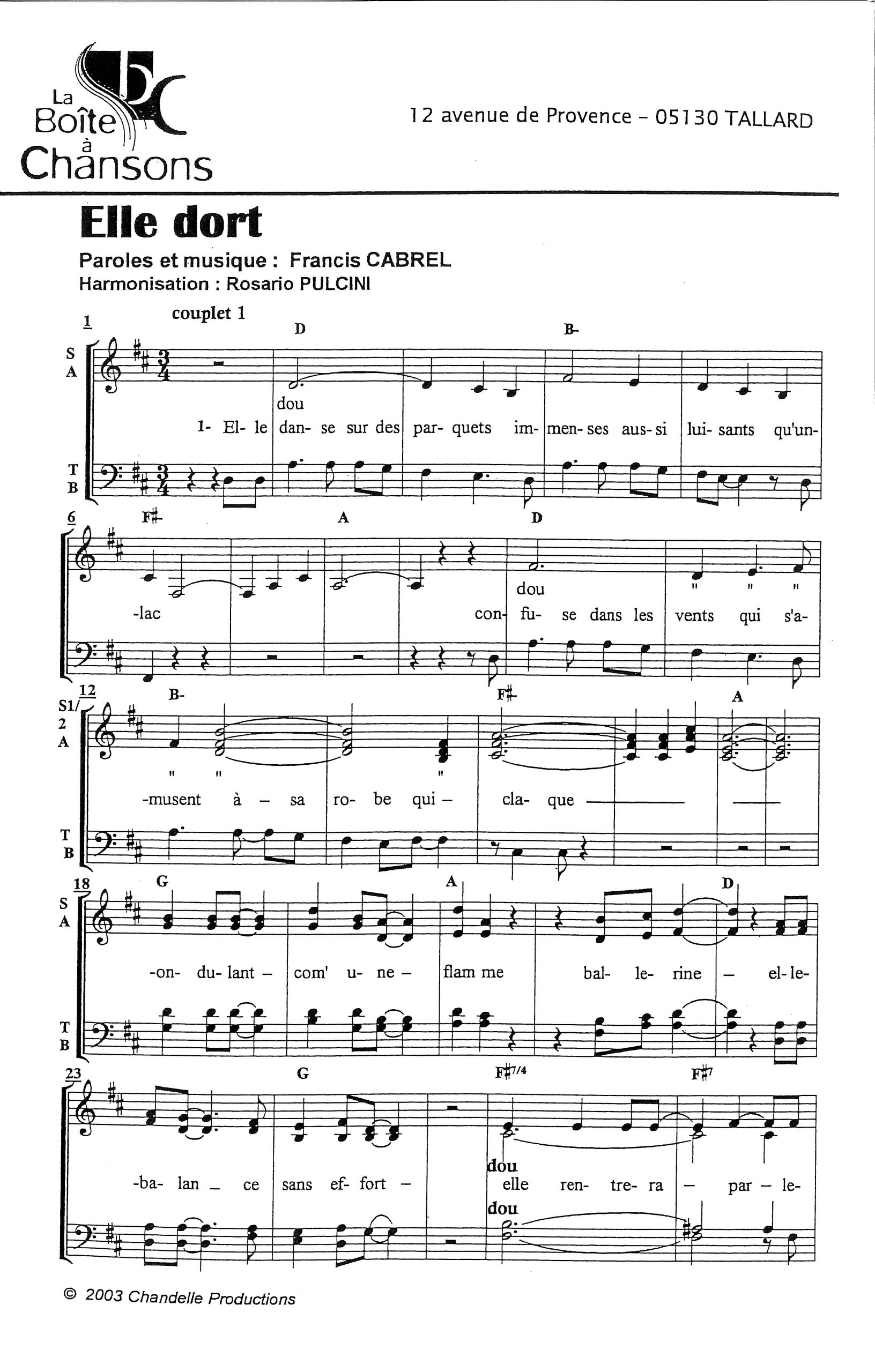 Paroles et musique de CABREL Harmonisation : Rosario PULCINI