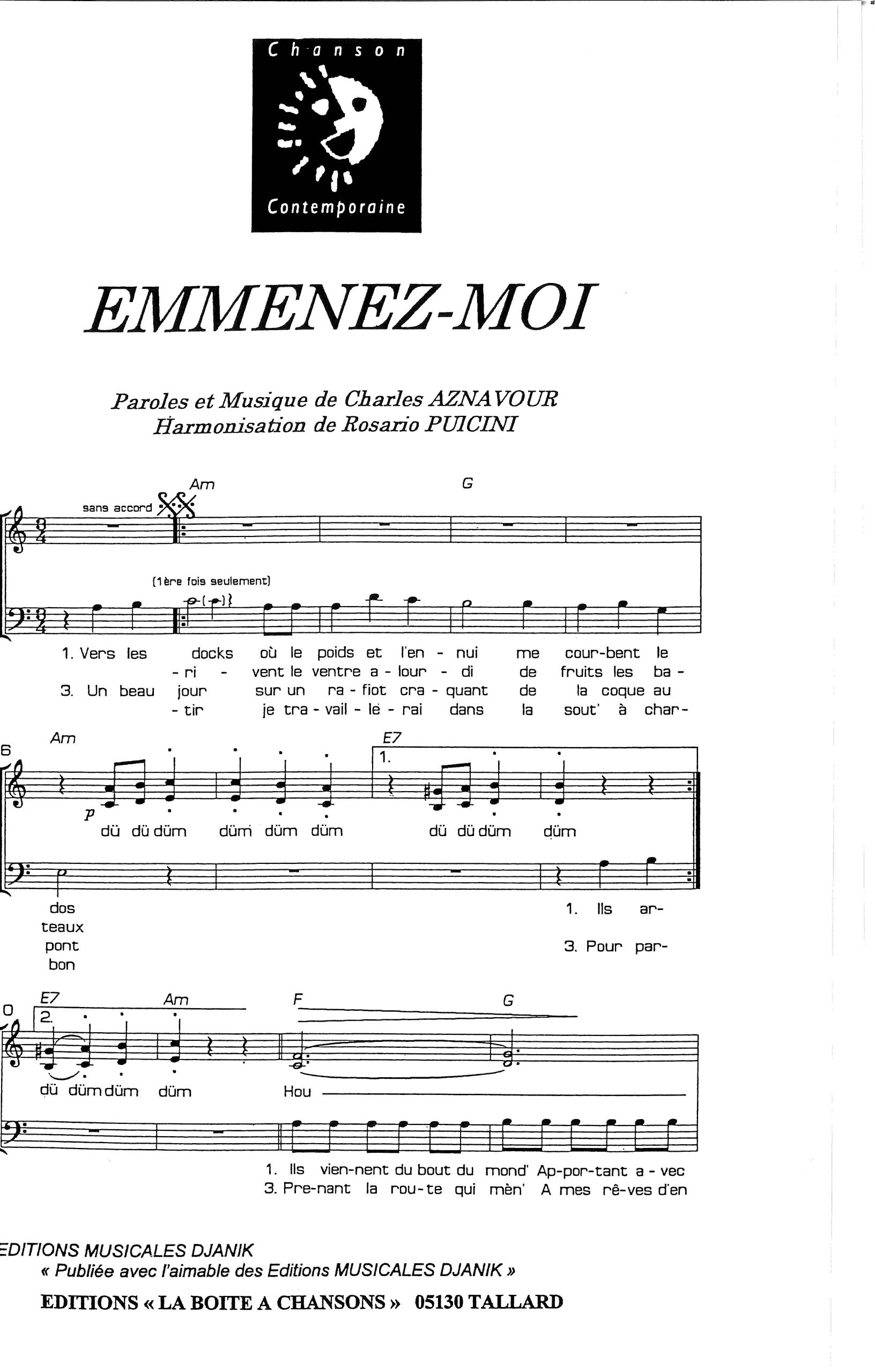 Paroles et musique de AZNAVOUR Harmonisation : Rosario PULCINI