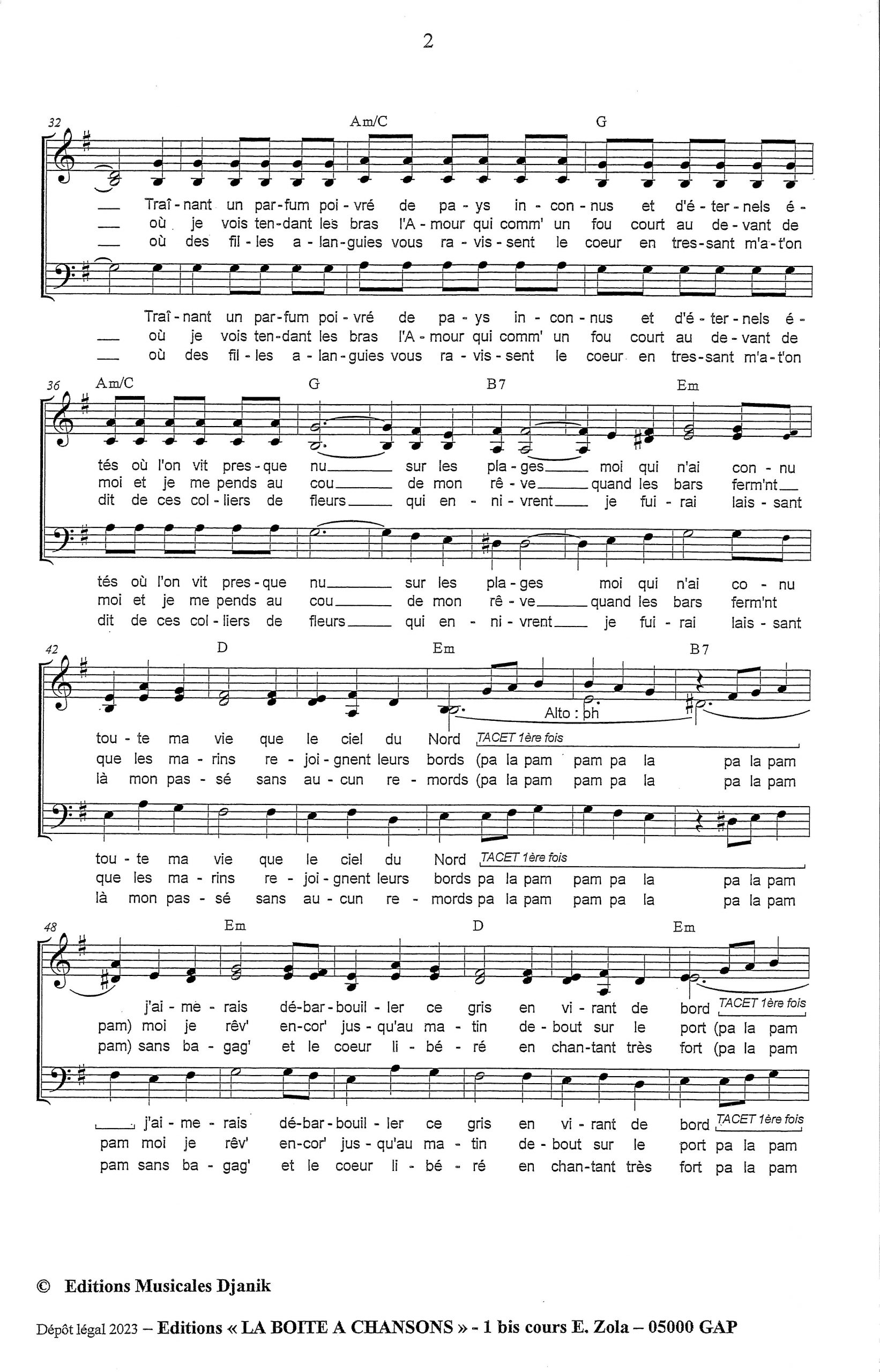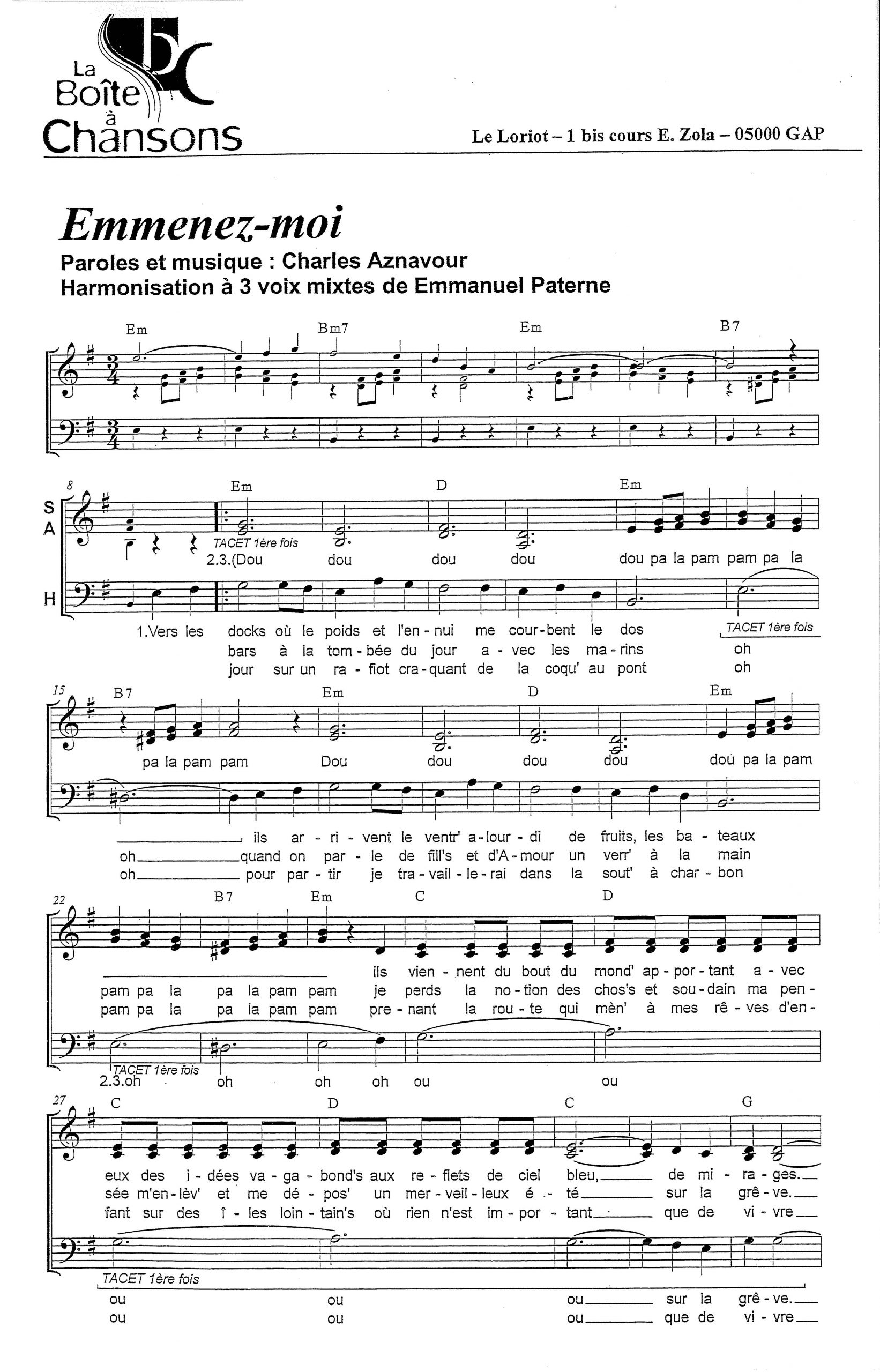 Paroles et musique : C. Aznavour Harmonisation à 3 voix mixtes d’Emmanuel Paterne