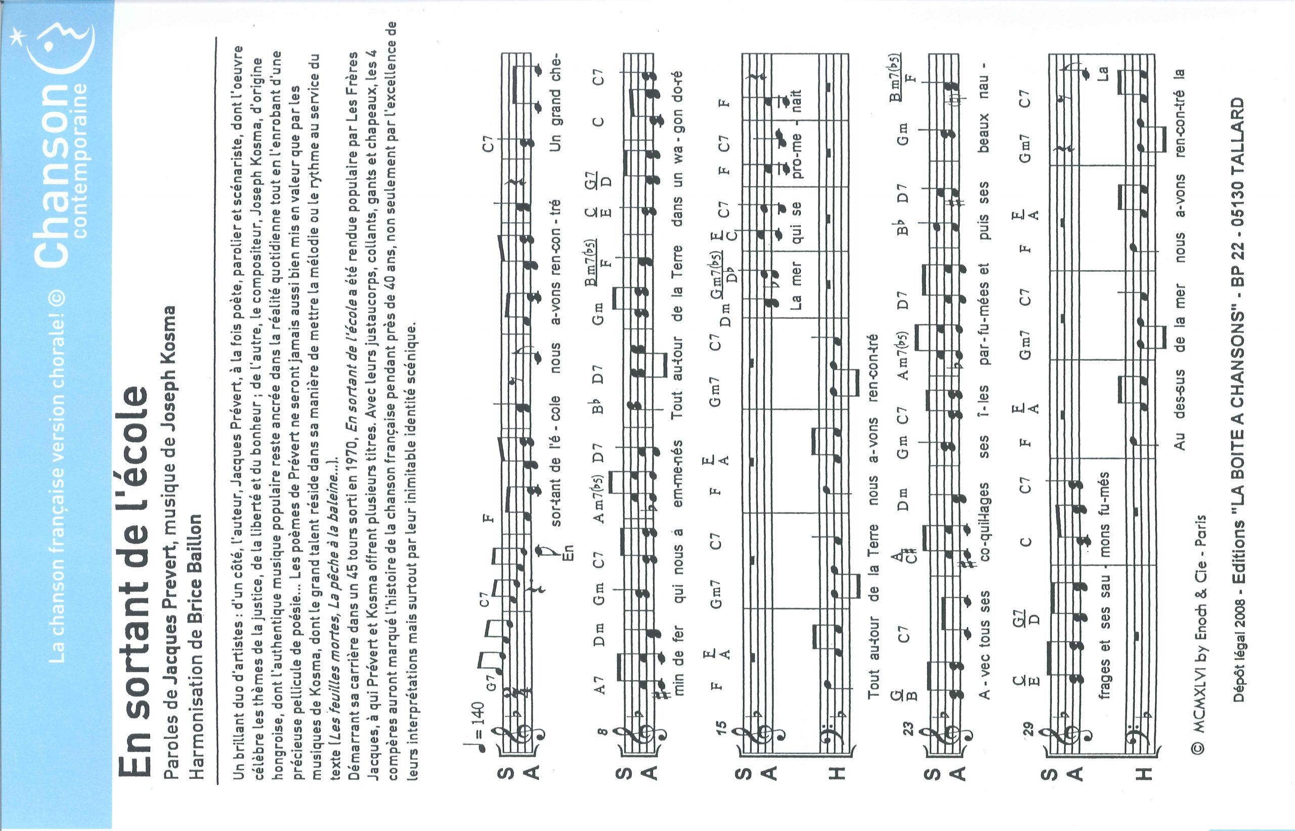 Paroles et musique de PREVERT / KOSMA Harmonisation : Brice BAILLON