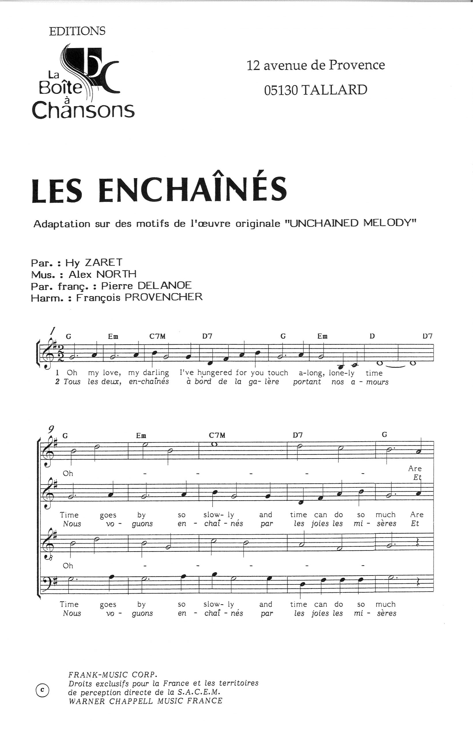Paroles et musique de ZARET/NORTH/DELANOE Harmonisation : François PROVENCHER