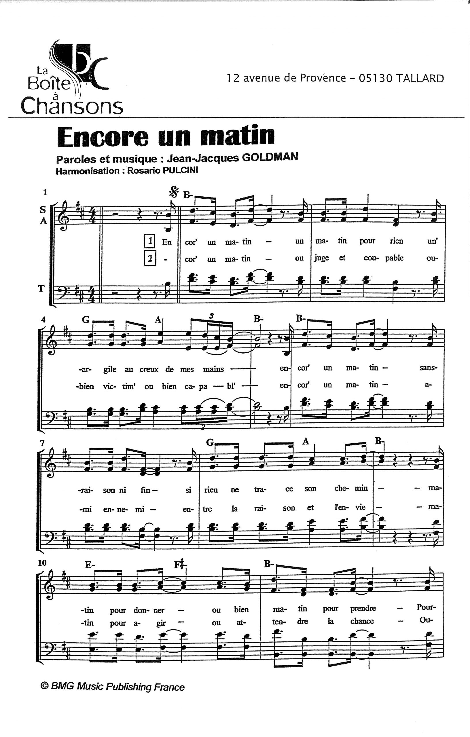 Paroles et musique de GOLDMAN Harmonisation : Rosario PULCINI