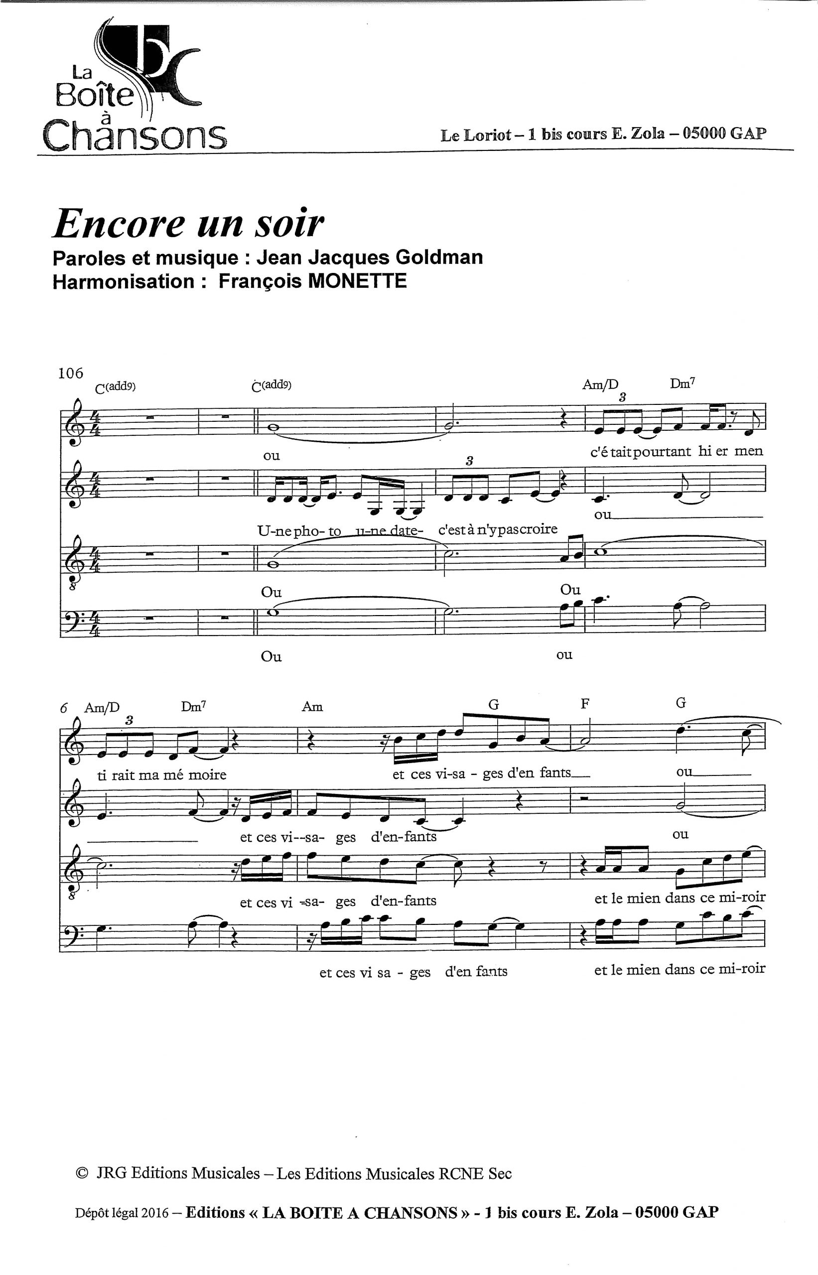Paroles et musique : J.J. Goldman Harmonisation : François MONETTE