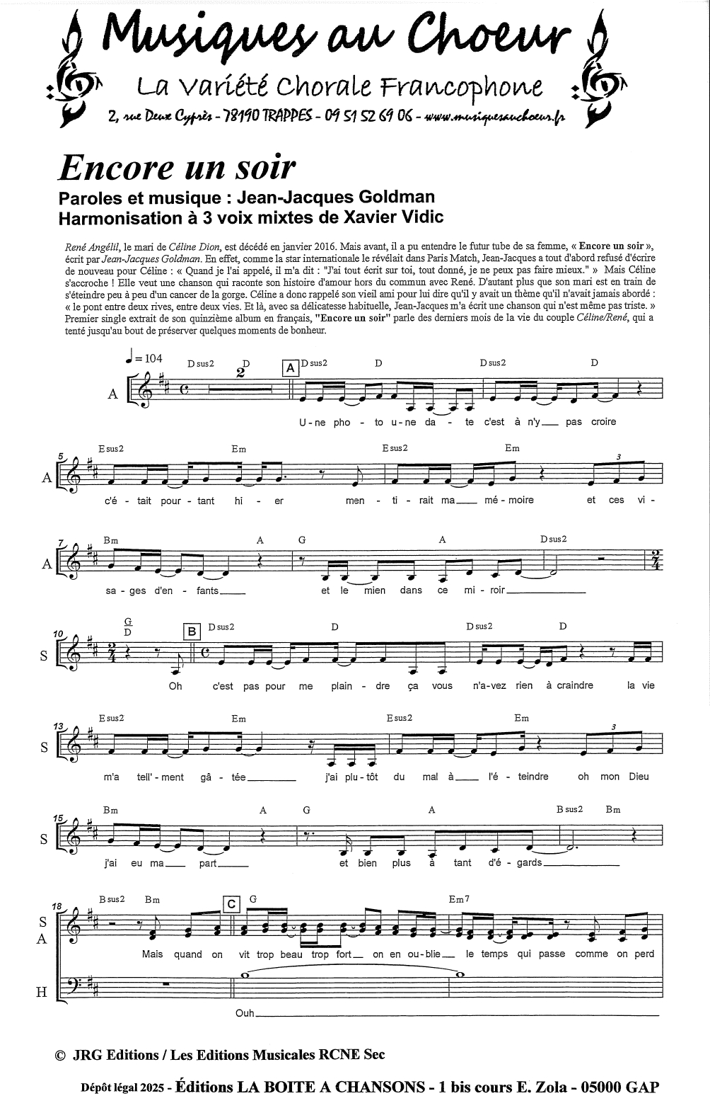 Harmonisation à 3 voix mixtes de Xavier Vidic
