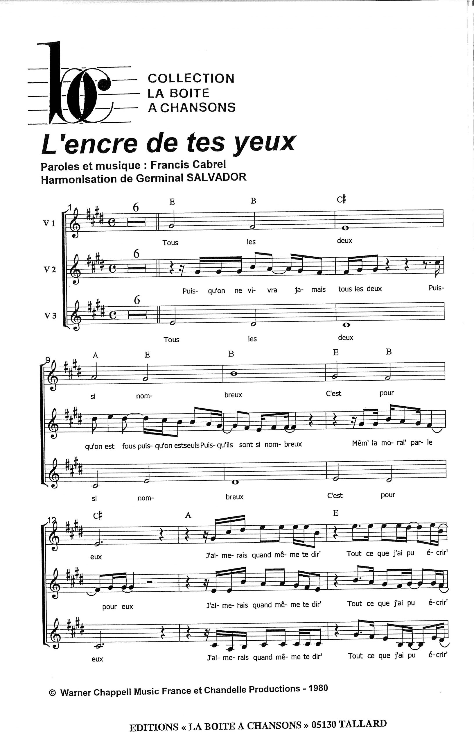 Paroles et musique de CABREL Harmonisation : Germinal SALVADOR