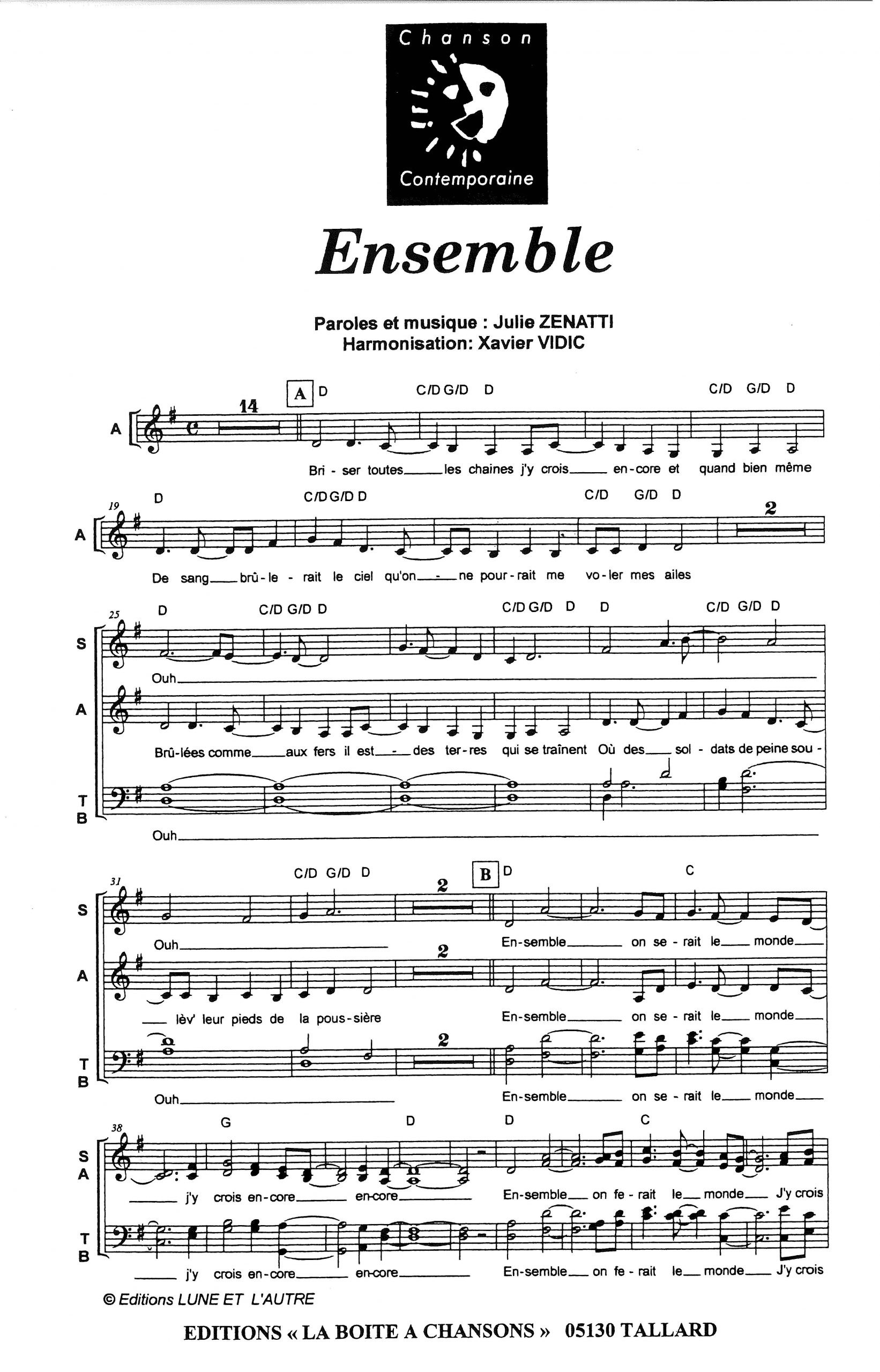 Paroles et musique de ZENATTI Harmonisation : Xavier VIDIC