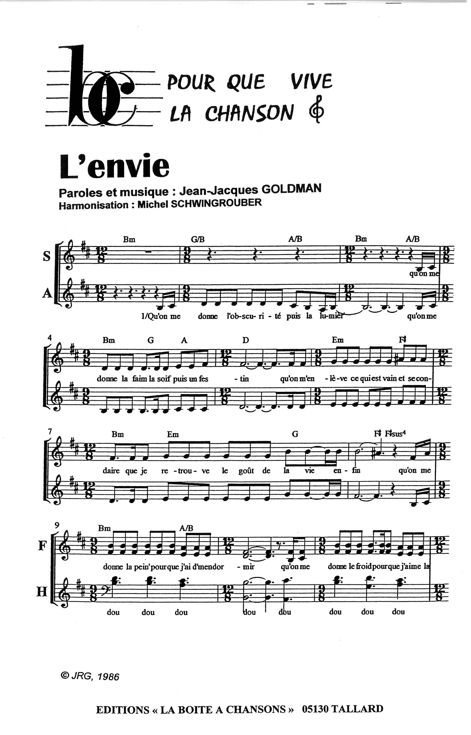 Paroles et musique de GOLDMAN Harmonisation : Michel SCHWINGROUBER