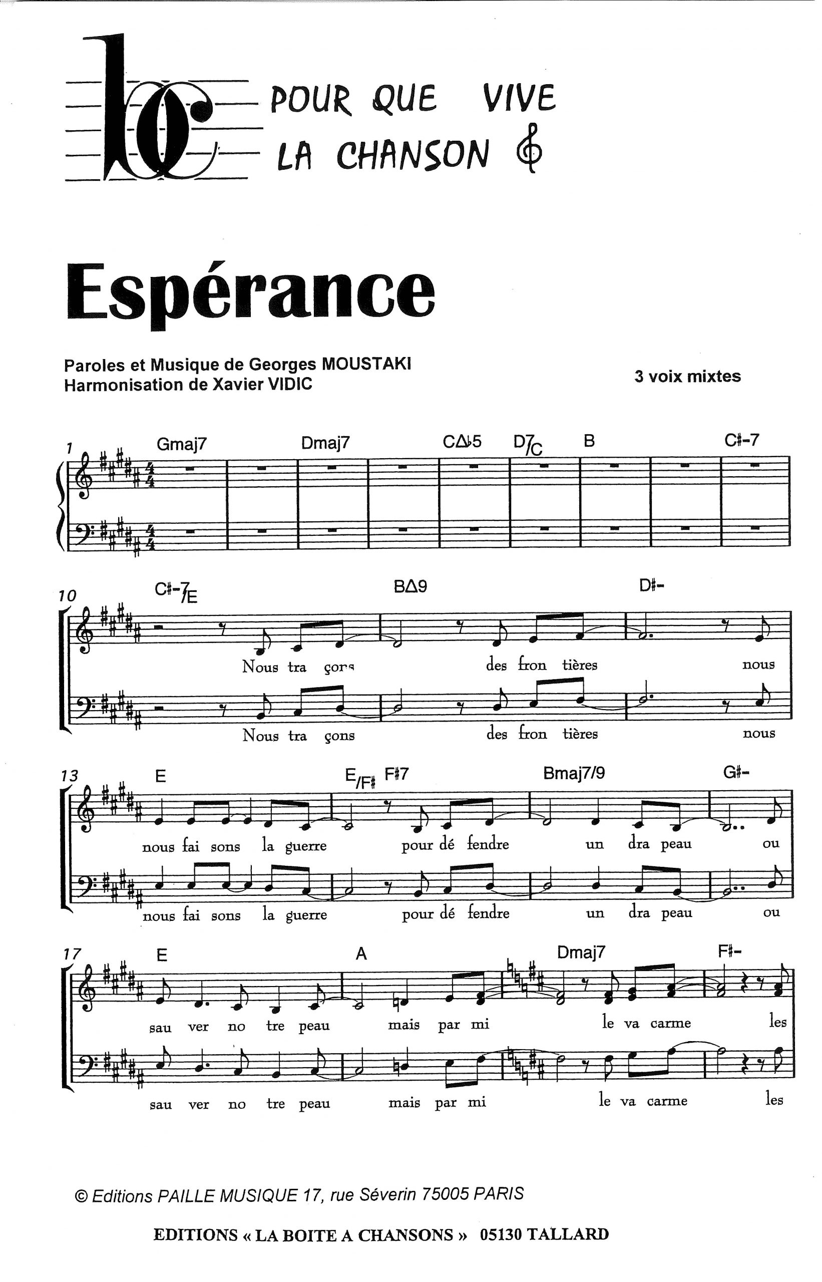 Paroles et musique de Georges MOUSTAKI Harmonisation : Xavier VIDIC