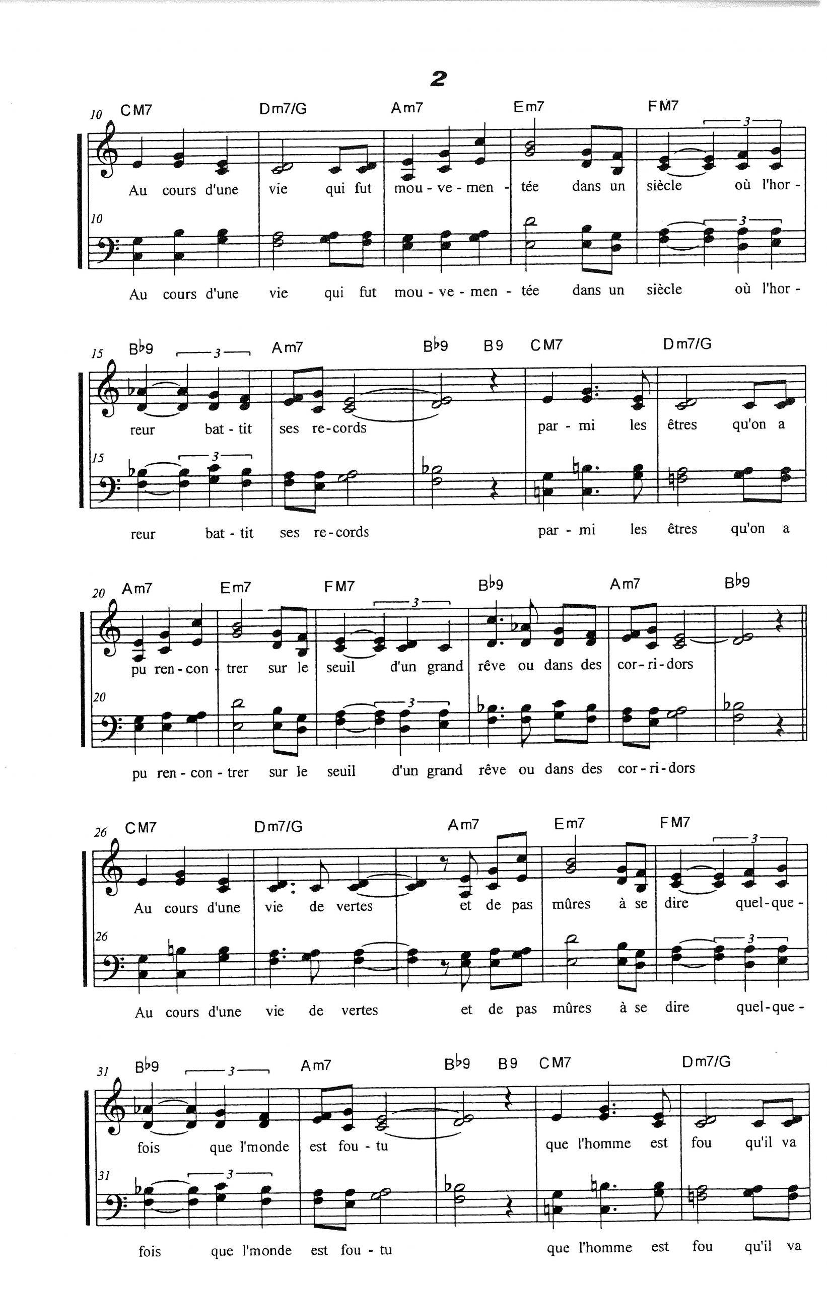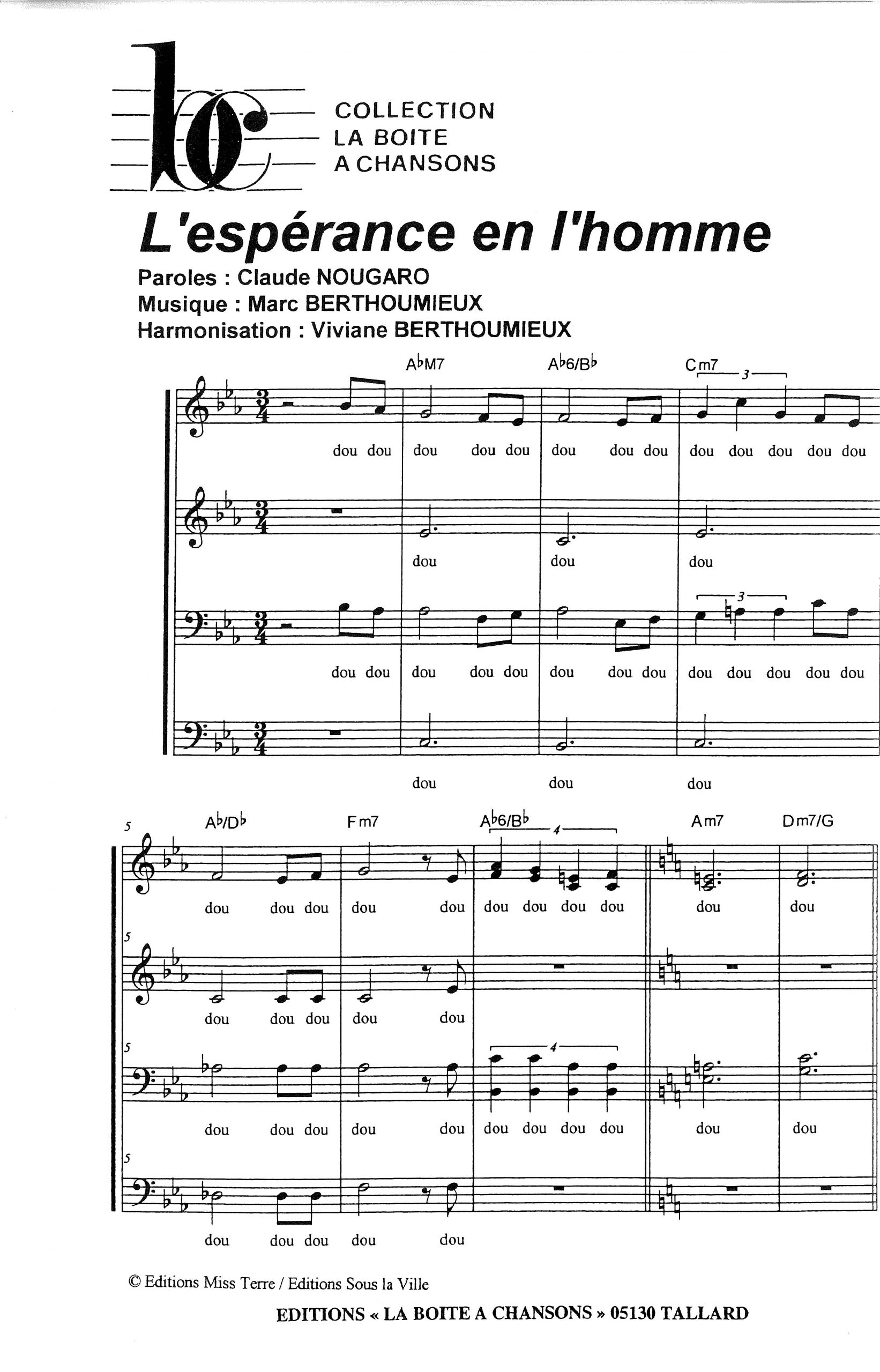 Paroles et musique de NOUGARO / BERTHOUMIEUX Harmonisation : Viviane BERTHOUMIEUX
