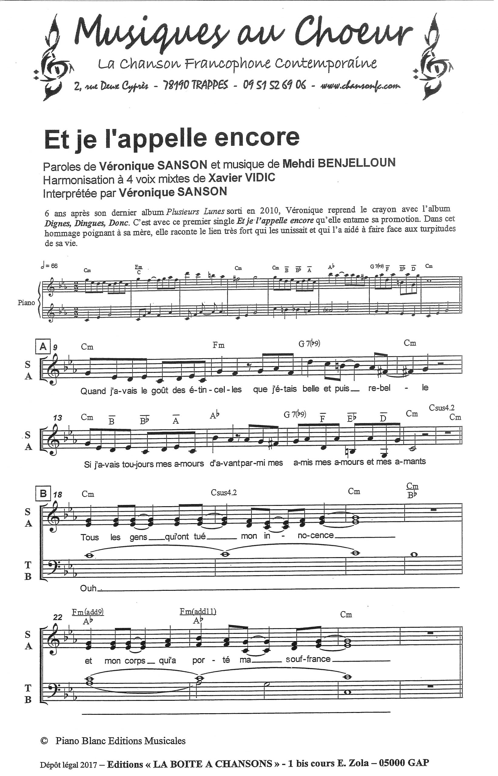 Paroles et musique : V. Sanson / M. Benjelloun Harmonisation : Xavier VIDIC