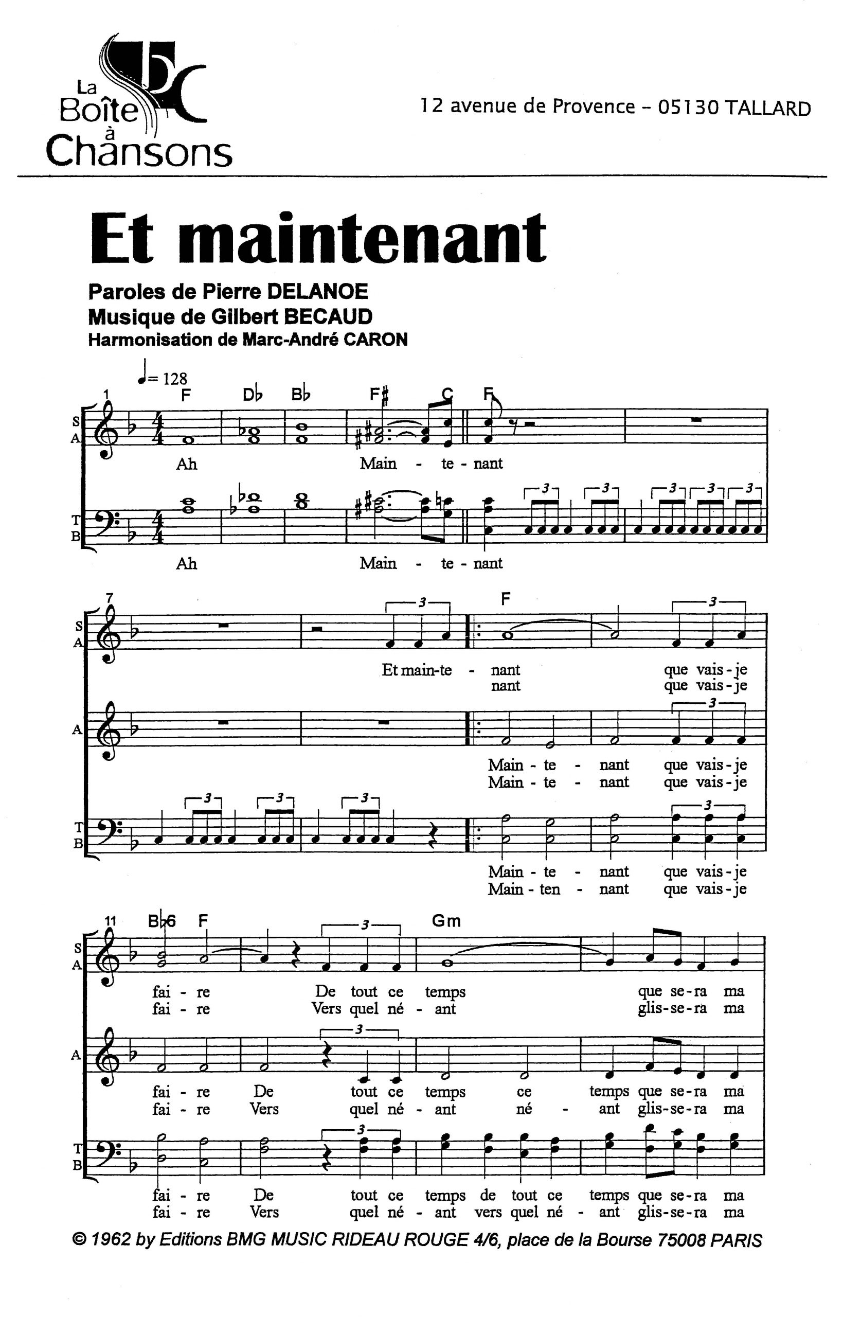 Paroles et musique de DELANOE/BECAUD Harmonisation : Marc André CARON