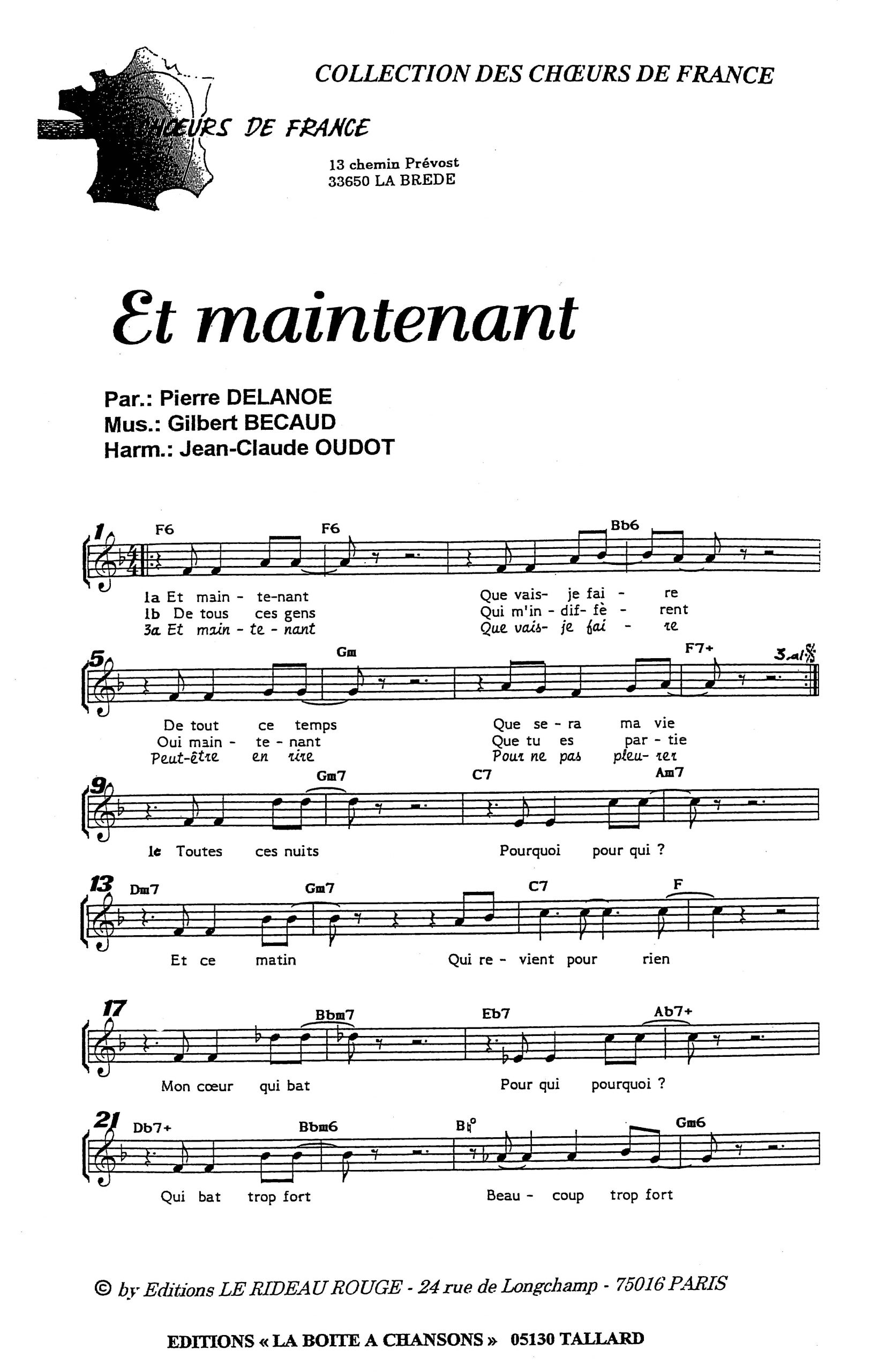 Paroles et musique de DELANOE/BECAUD Harmonisation : Jean Claude OUDOT