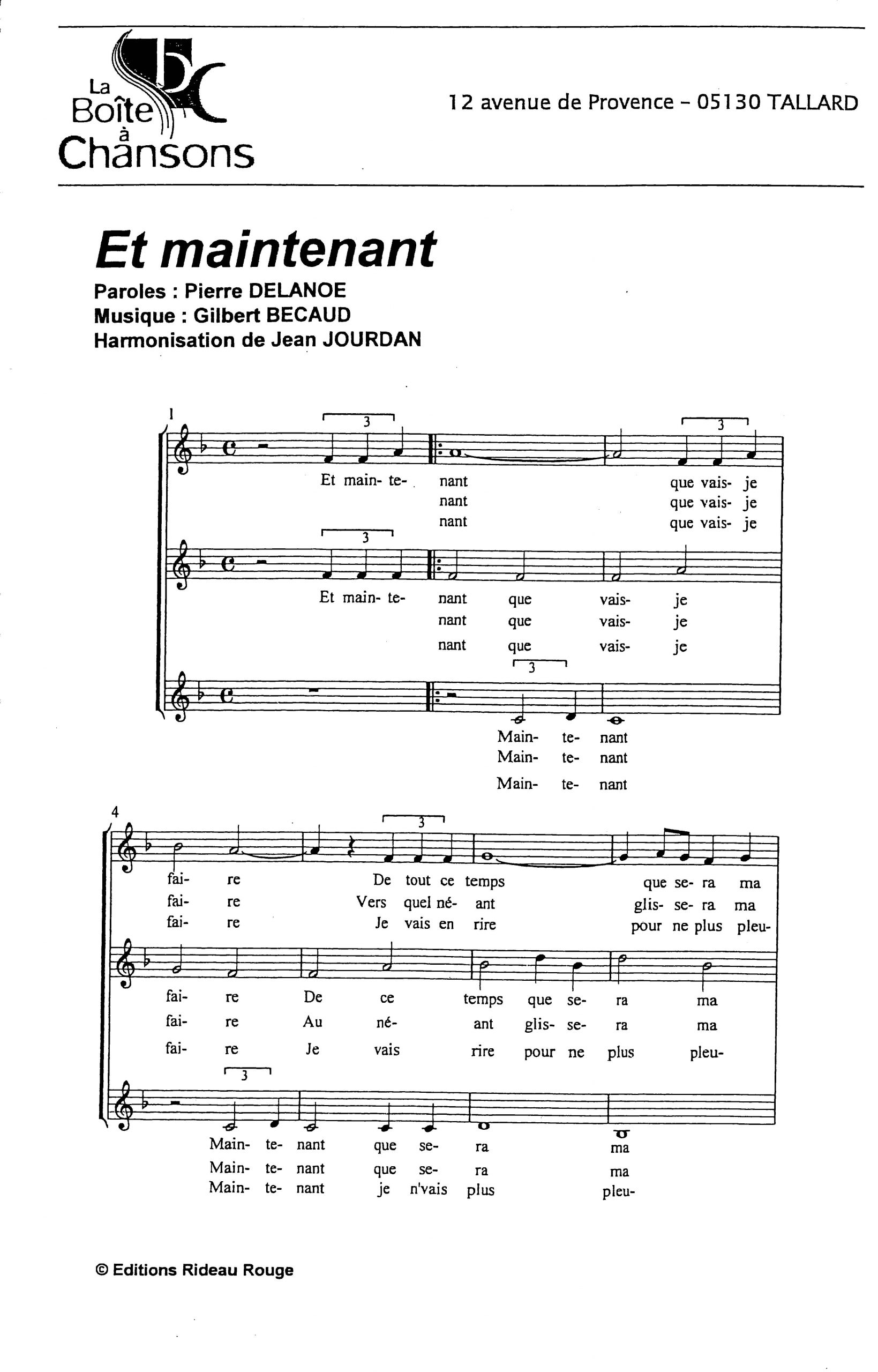 Paroles et musique de DELANOE / BECAUD Harmonisation : Jean JOURDAN