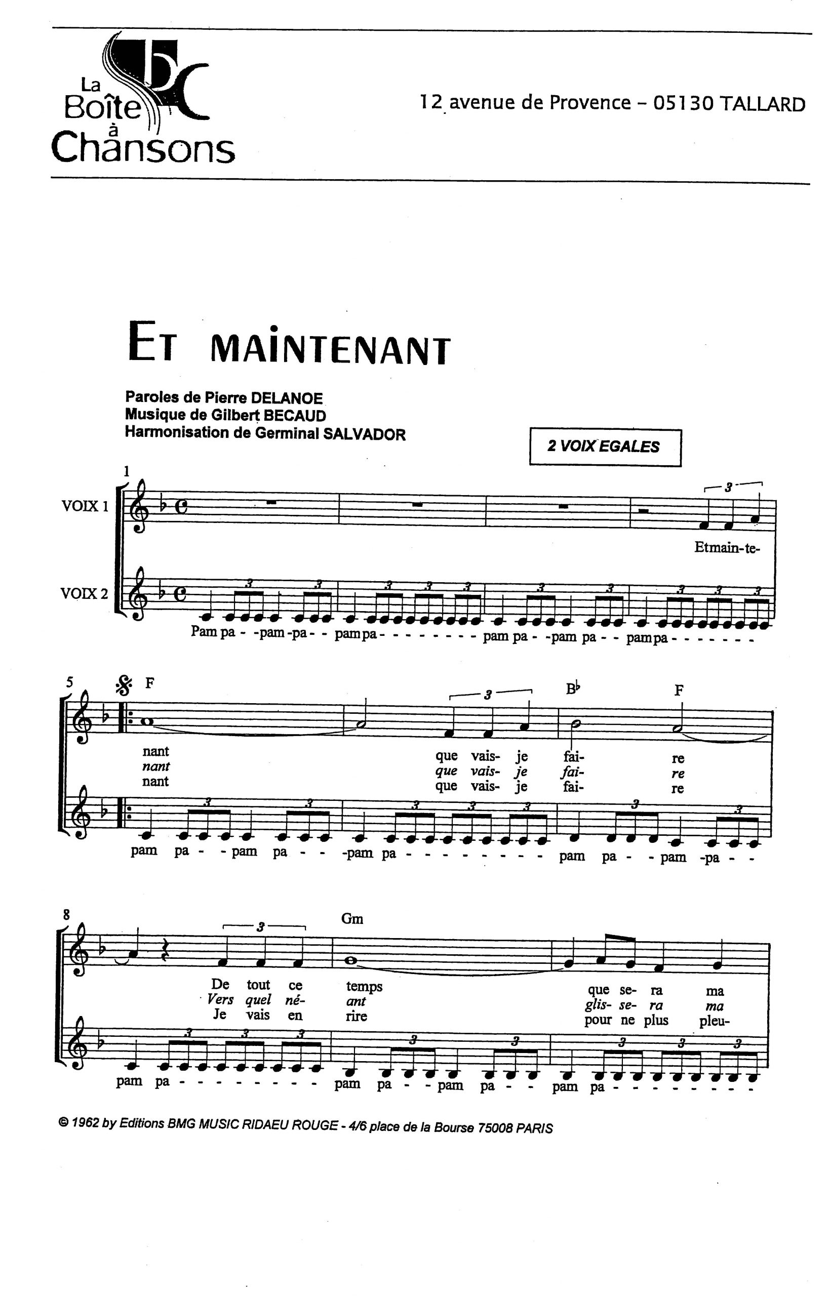 Paroles et musique de DELANOE/BECAUD Harmonisation : Germinal SALVADOR