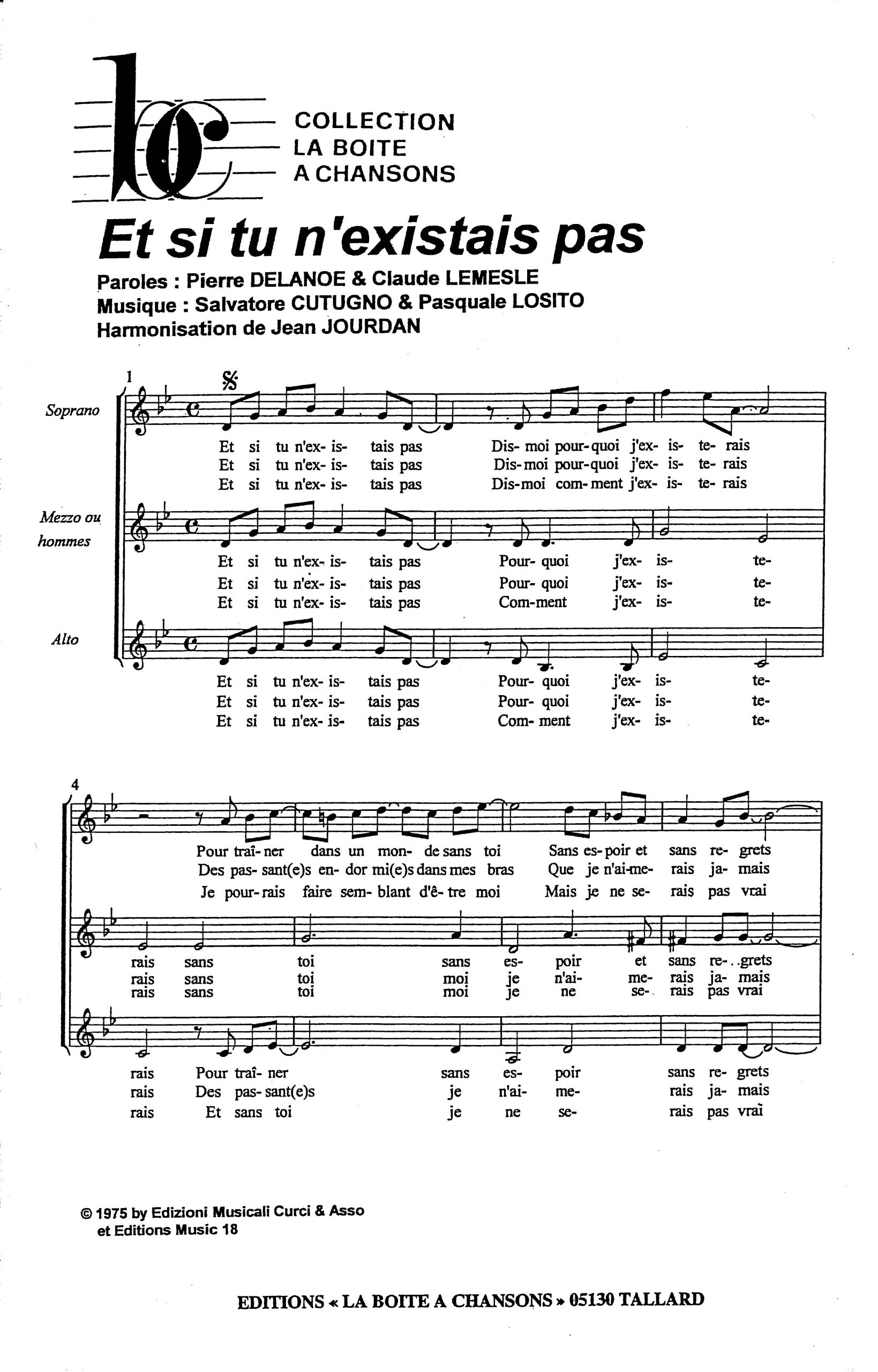 Paroles et musique de DELANOE/LEMESLE/CUTUGNO Harmonisation : Jean JOURDAN