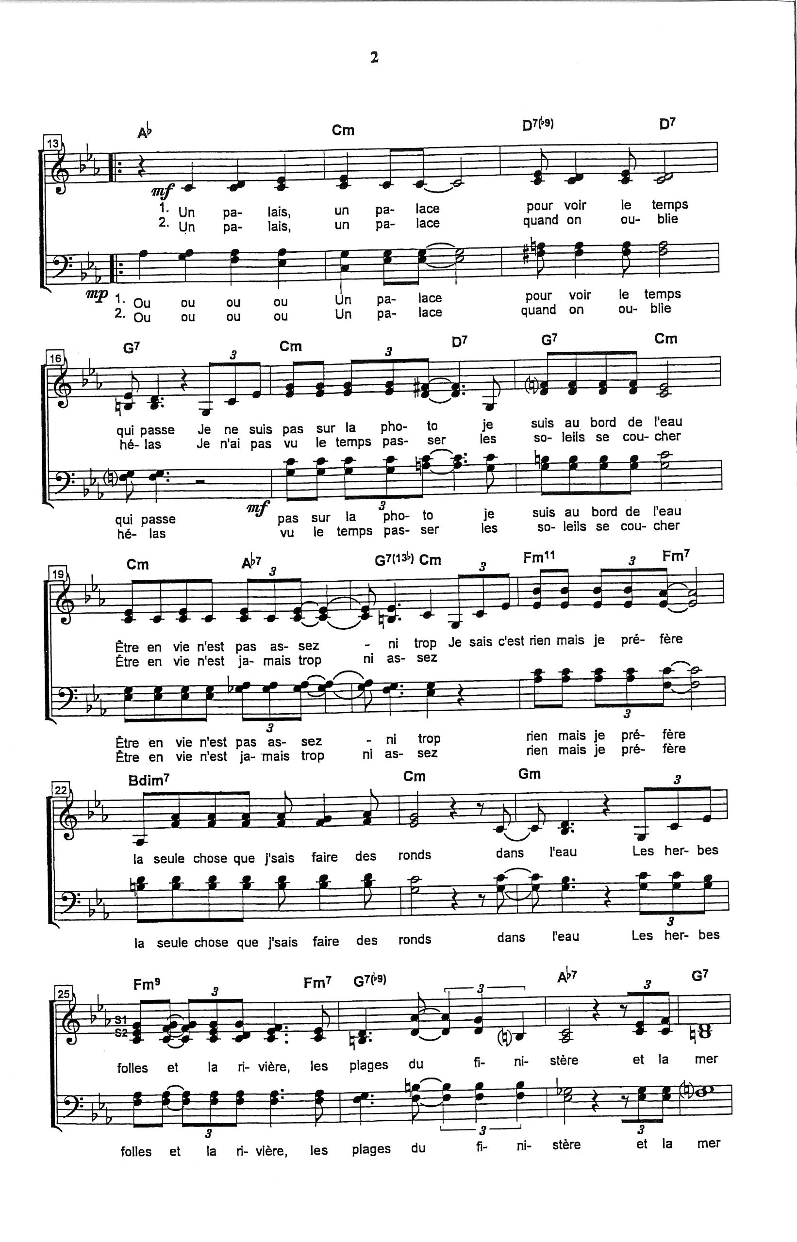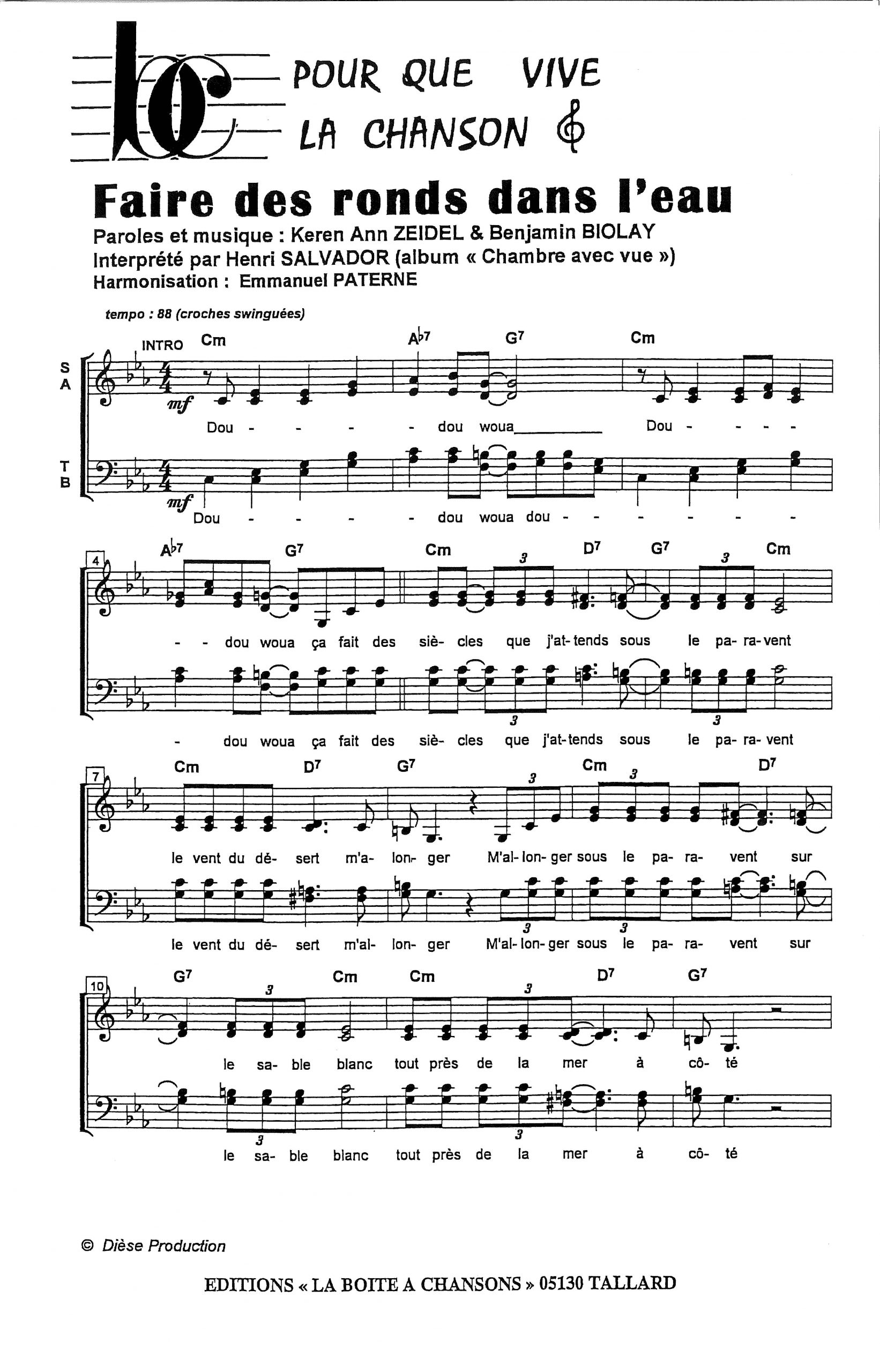 Paroles et musique de ZEIDEL / BIOLAY Harmonisation : Emmanuel PATERNE