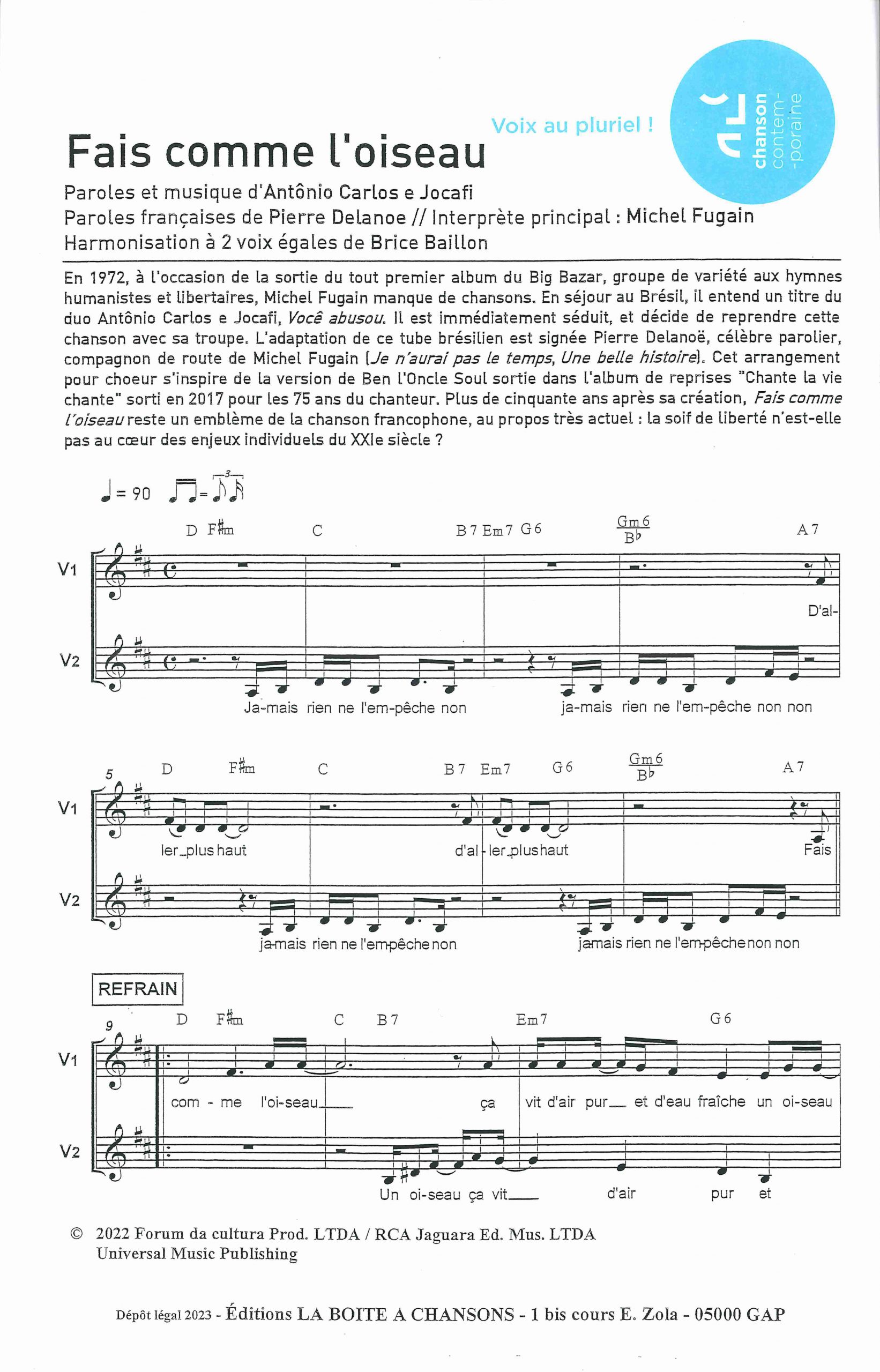 Paroles et musique : A. Carlos e Jocafi / P. Delanoë Harmonisation : Brice Baillon