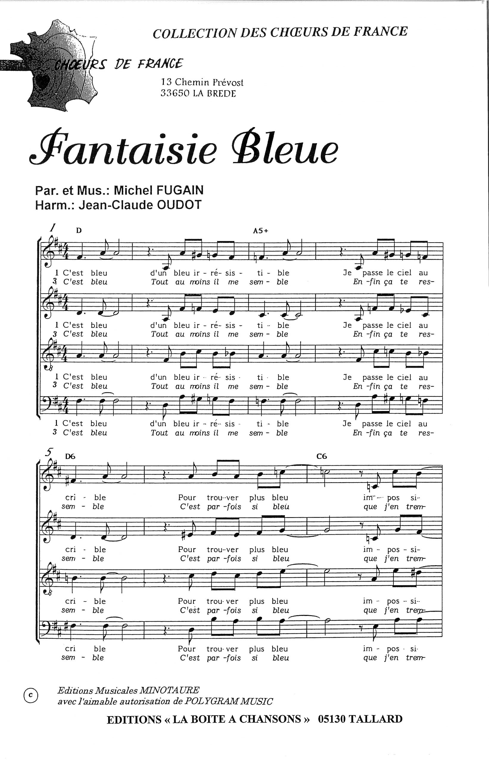 Paroles et musique de FUGAIN Harmonisation : Jean Claude OUDOT