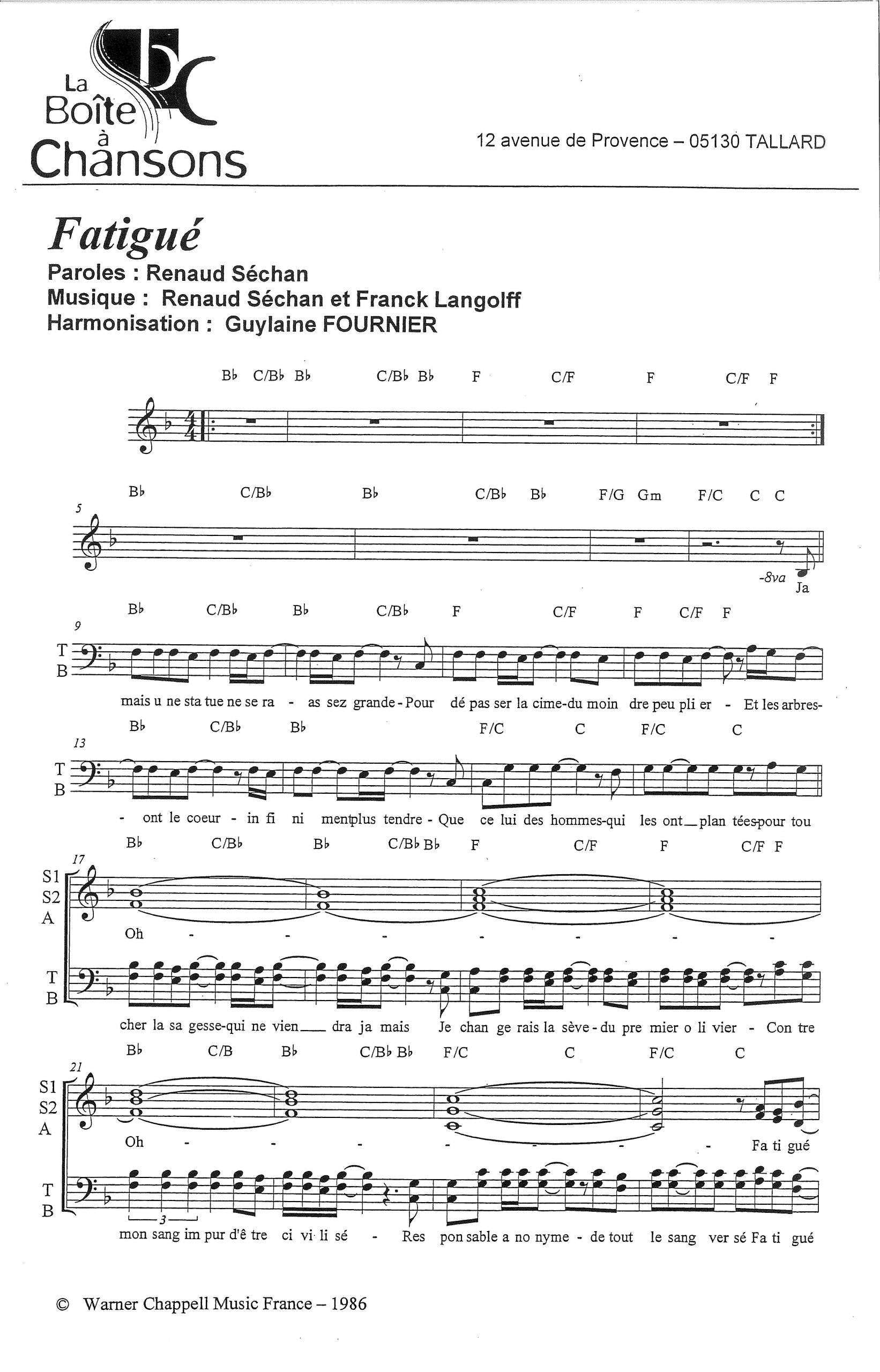 Paroles et musique : Renaud / F. Langolff Harmonisation : Guylaine FOURNIER