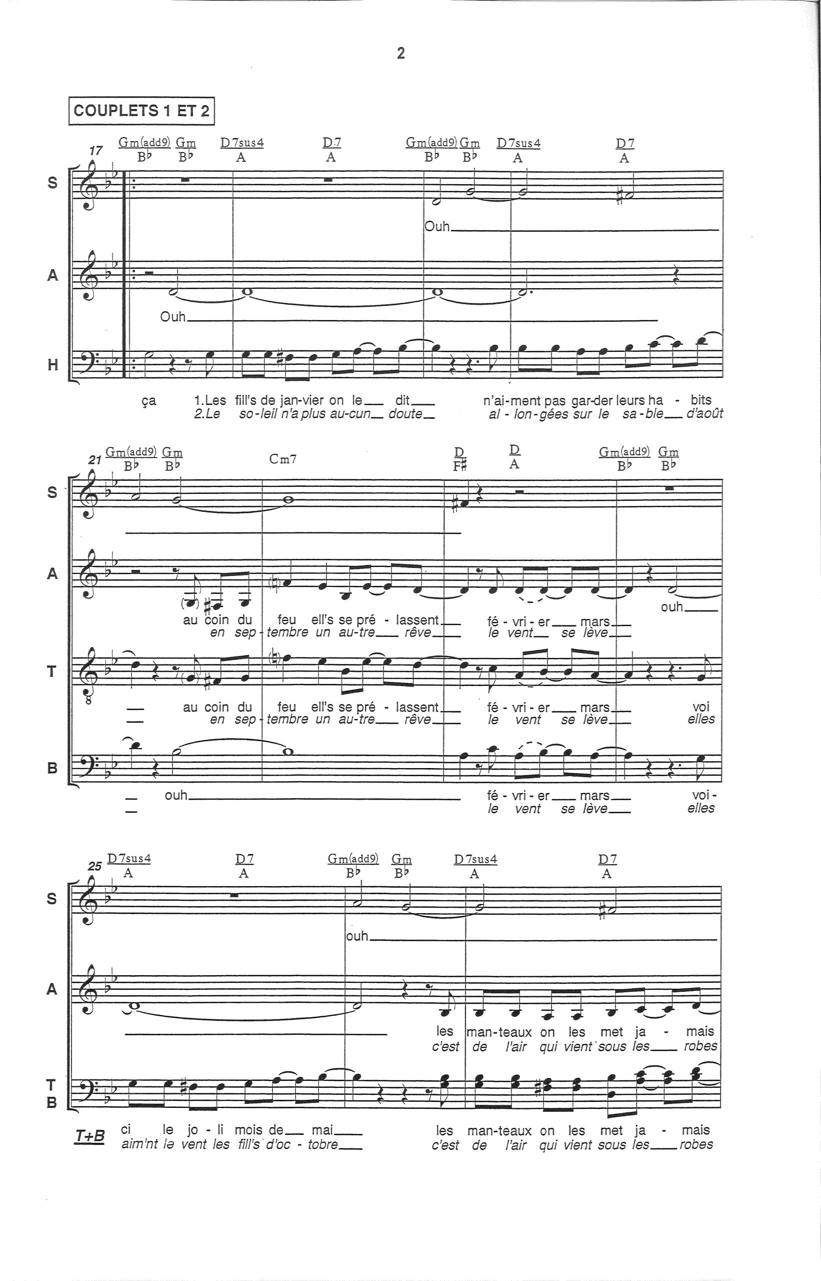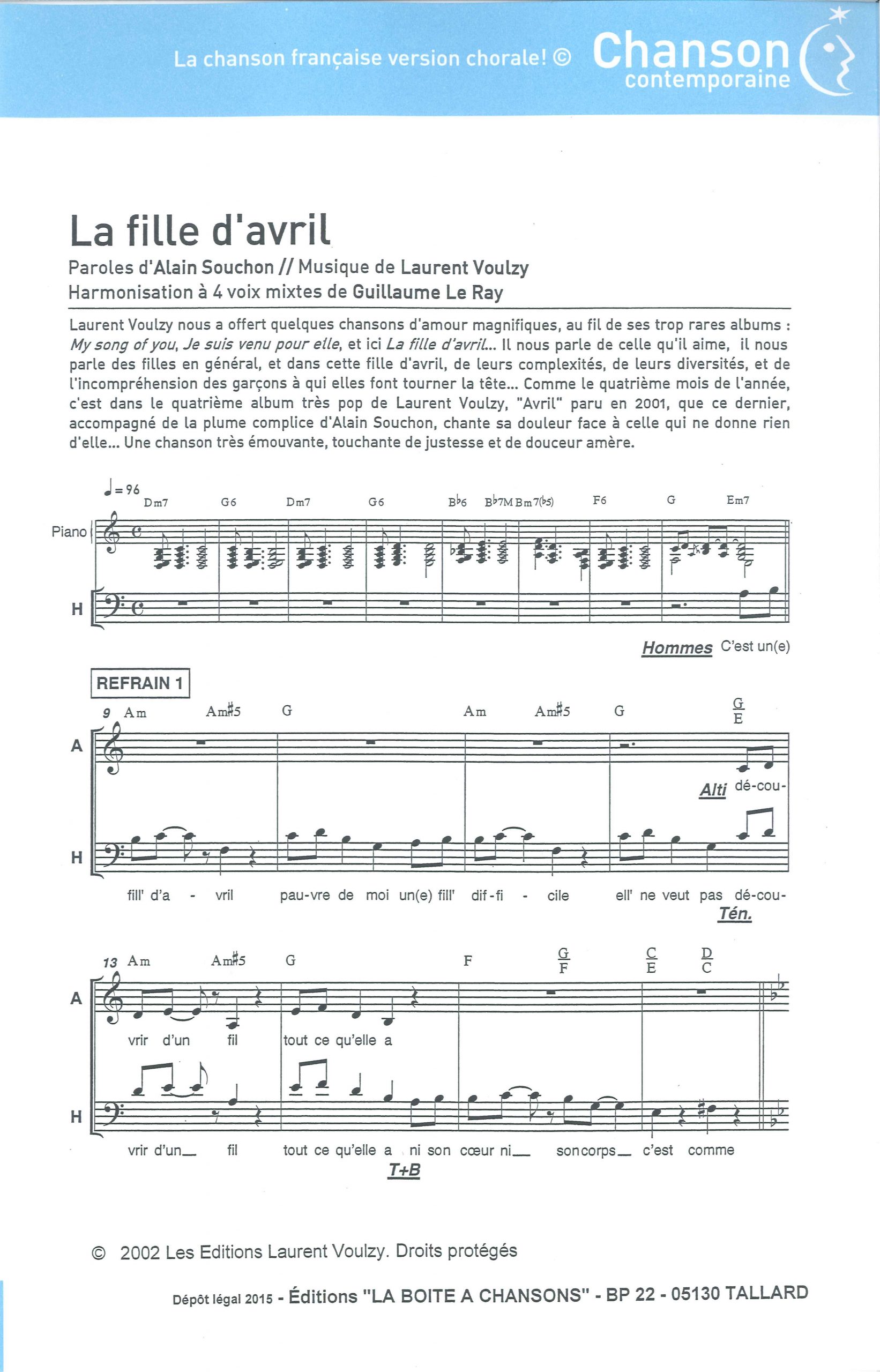 Paroles et musique : Bouchon / Voulzy` Harmonisation : Guillaume LE RAY