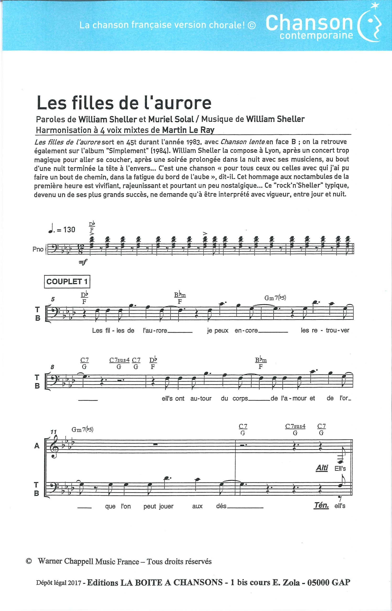 Paroles et musique : W. Sheller / M. Solal Harmonisation : Martin LE RAY