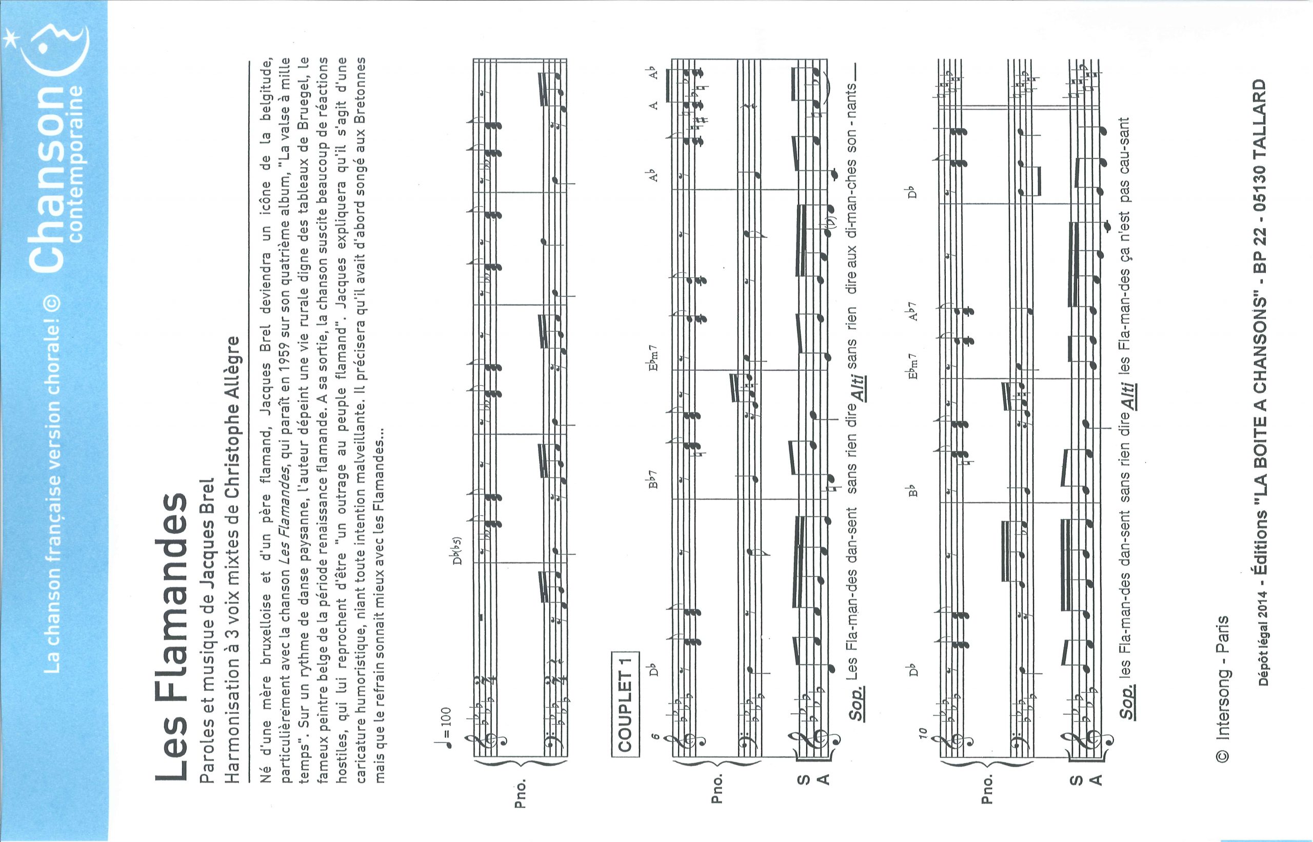 Paroles et musique de BREL Harmonisation : Christophe ALLEGRE