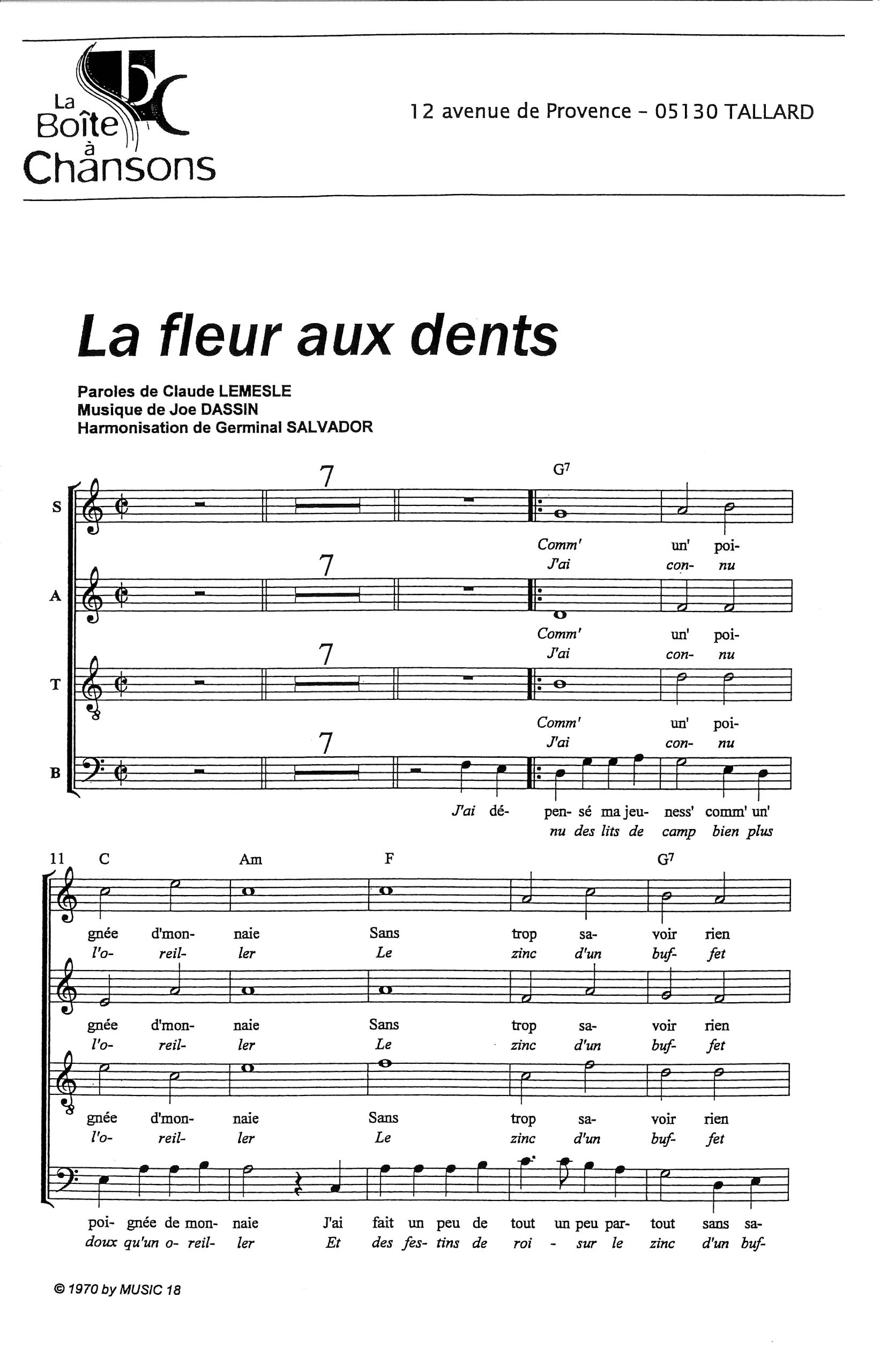 Paroles et musique de LEMESLE/DASSIN Harmonisation : Germinal SALVADOR