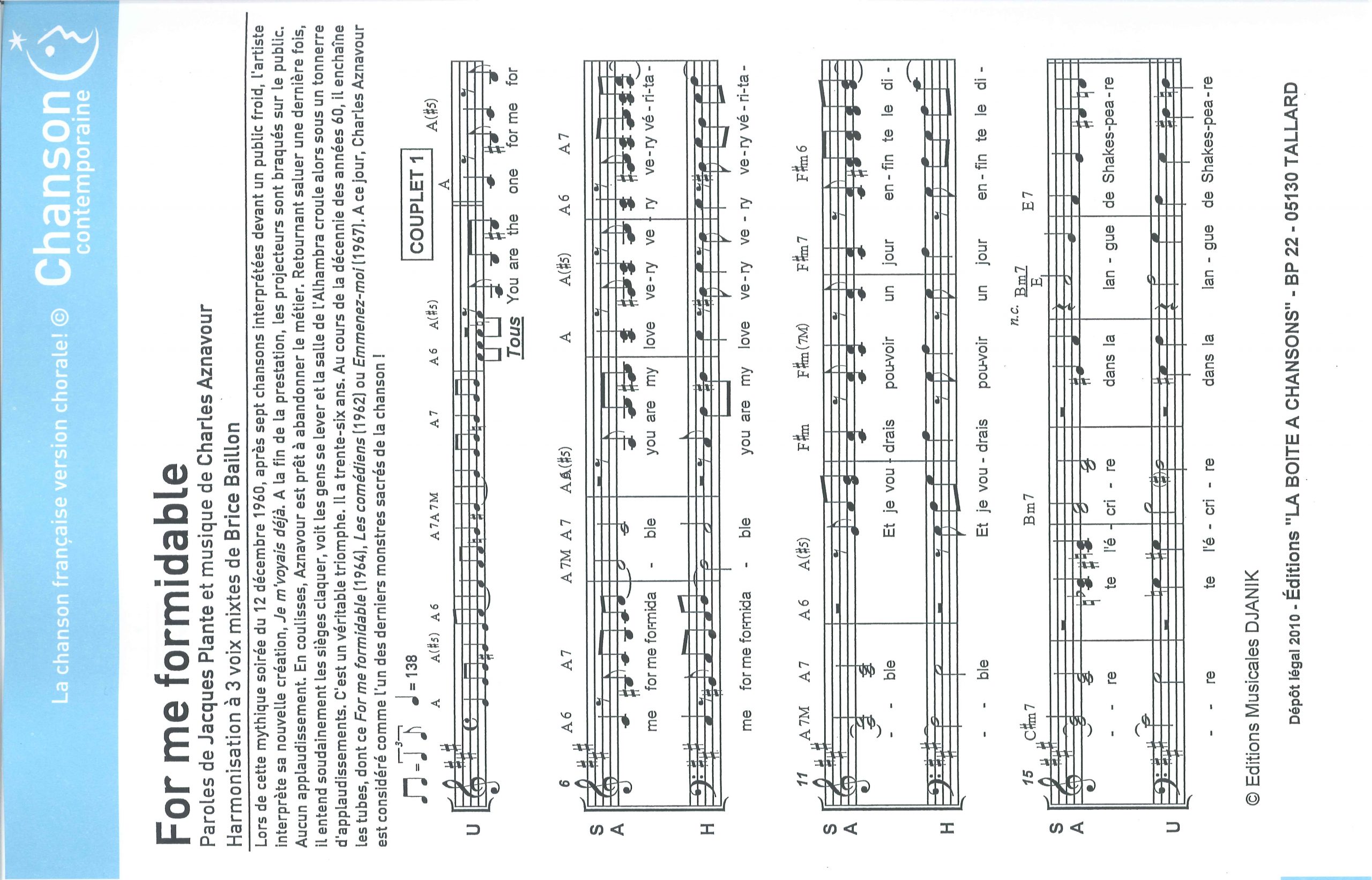 Paroles et musique de PLANTE/AZNAVOUR Harmonisation : Brice BAILLON