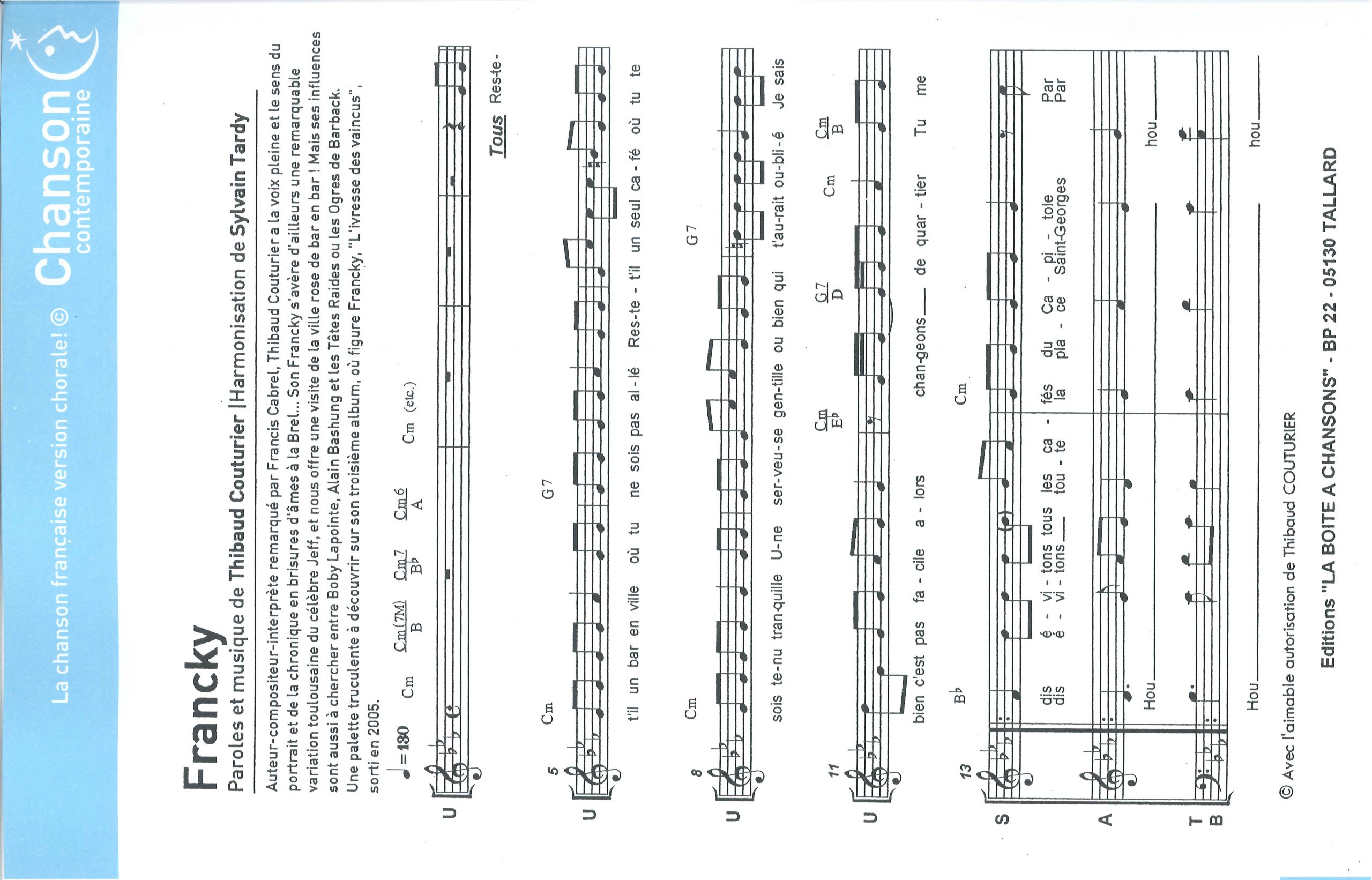 Paroles et musique de COUTURIER Harmonisation : Sylvain TARDY